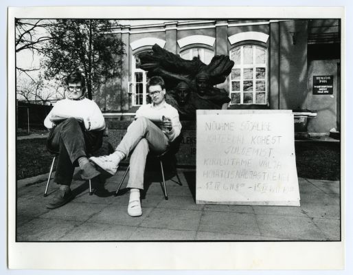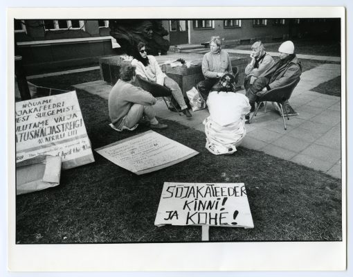 Hoiatusnäljastreik Tartu ülikooli sõjalise kateedri hoone ees aprillis 1989. a.