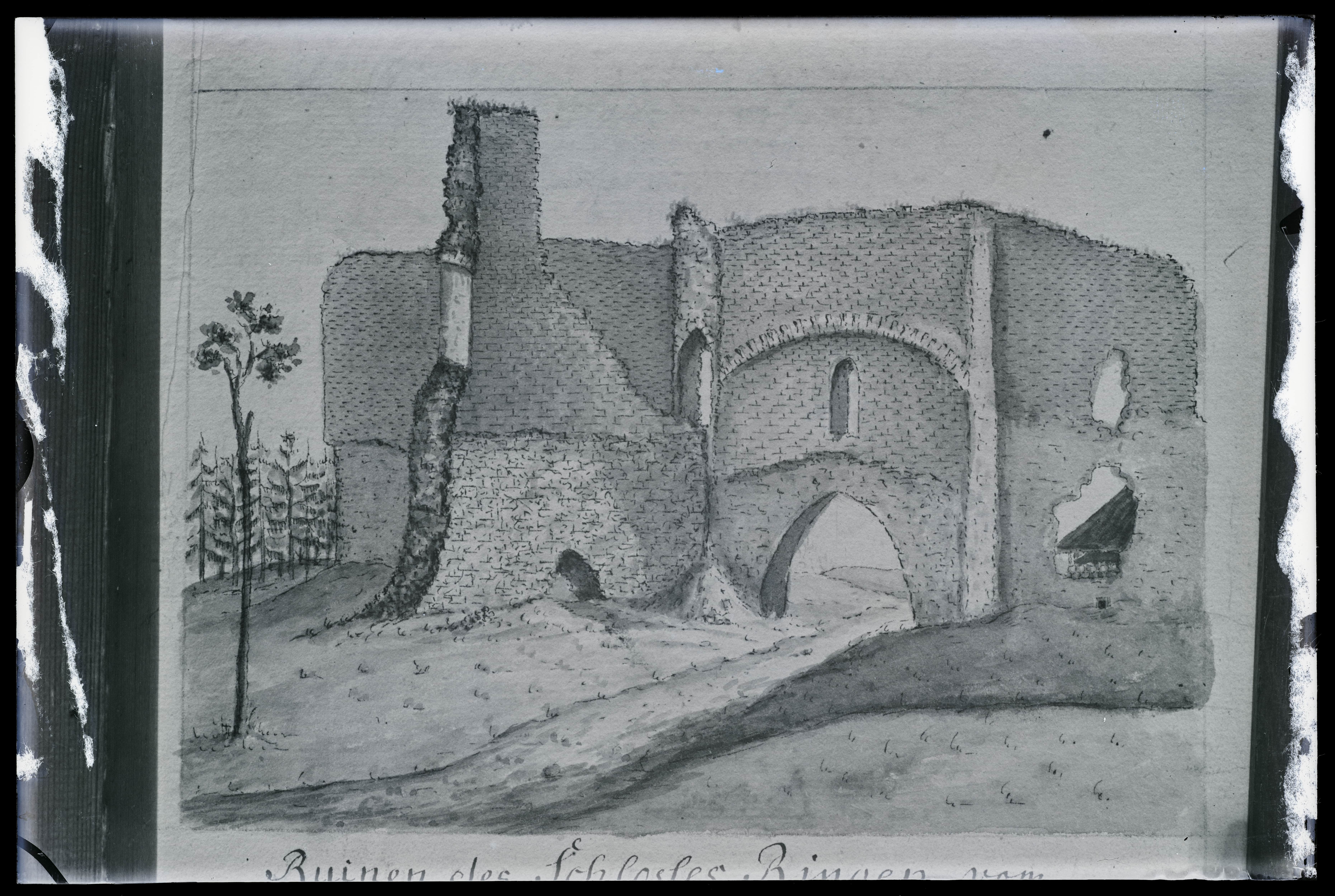 Rõngu vasallilinnuse varemete vaade Körberi järgi