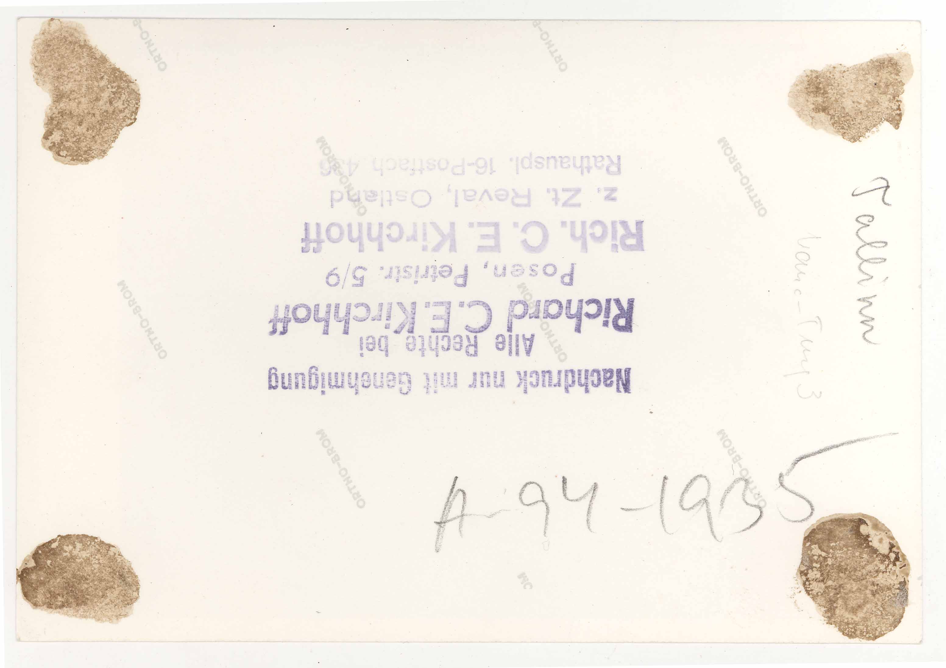 Tekst foto tagaküljel: Tallinn, Vana turg 3. Tempel: Kirchhoff