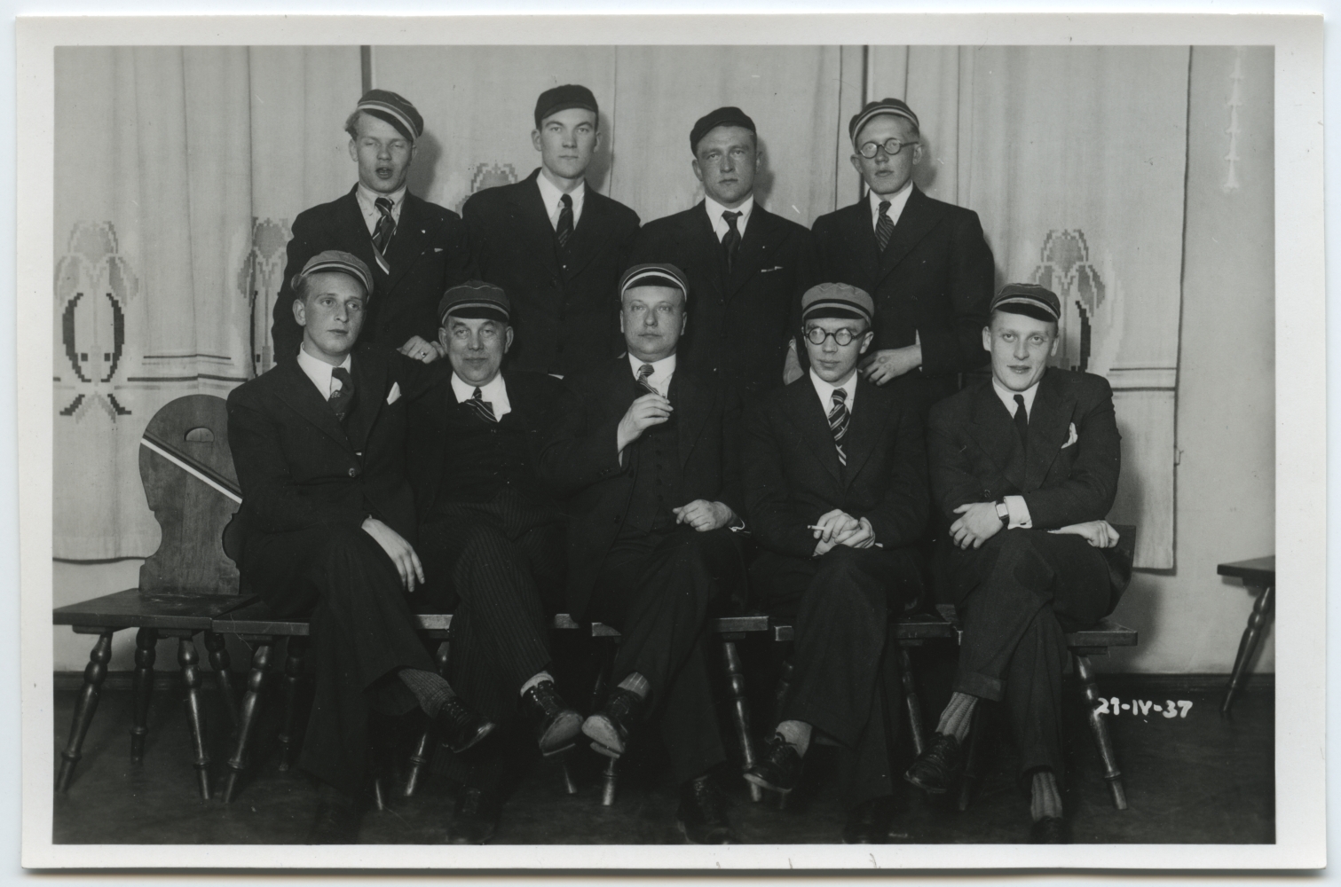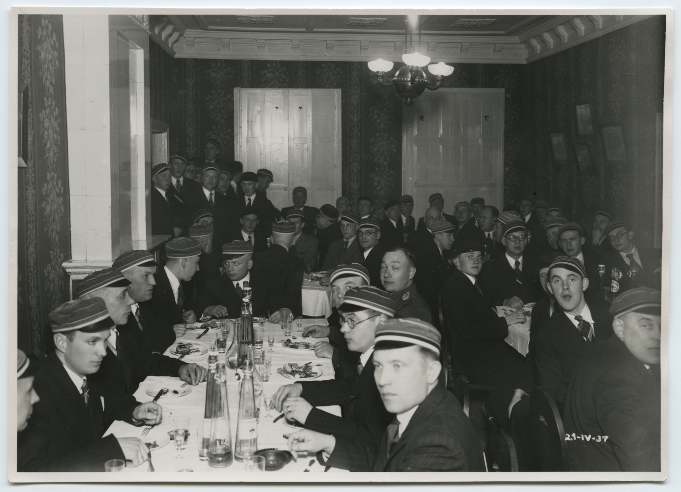 43. Grupp korp. Revelia liikmeid. 1. reas keskel Herbert Normann. Fotograaf teadmata; 44. Korporandid lauas istumas. Foto: Paul Karmet