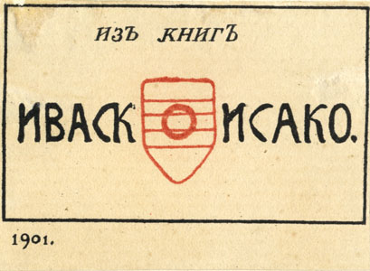 Udo Ivaski esimene eksliibris, mille joonistus valmis 1898 ja on autori poolt signeeritud 14. III 1898. Esimesed proovitõmmised olid valmis enne 1900. a. aprillikuud, nagu selgub Ivaskite perekonna kirjavahetusest. 1901 ilmus terve tiraaž. Mustas raamis keskel: ИЗЪ КНИГЪ / ИВАСК ИСАКО. all vasakul: 1901.;"Eksliibris Tartu Riikliku Ülikooli Teaduslikus Raamatukogus. II