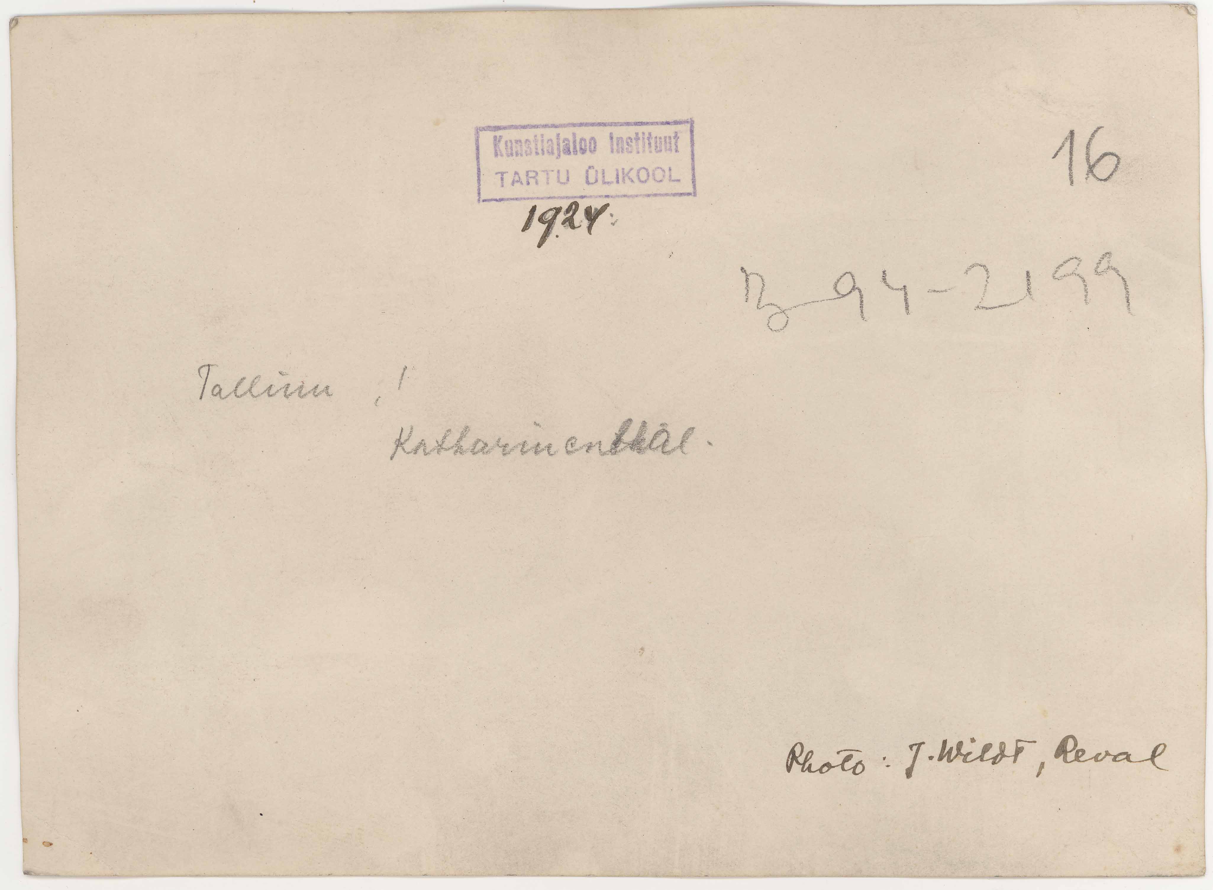 Tekst negatiivi ümbrikul: Reval. Schloss Katharinenthal. Phot. J. Wildt. 1924. Lae maal. Tempel: Instituut