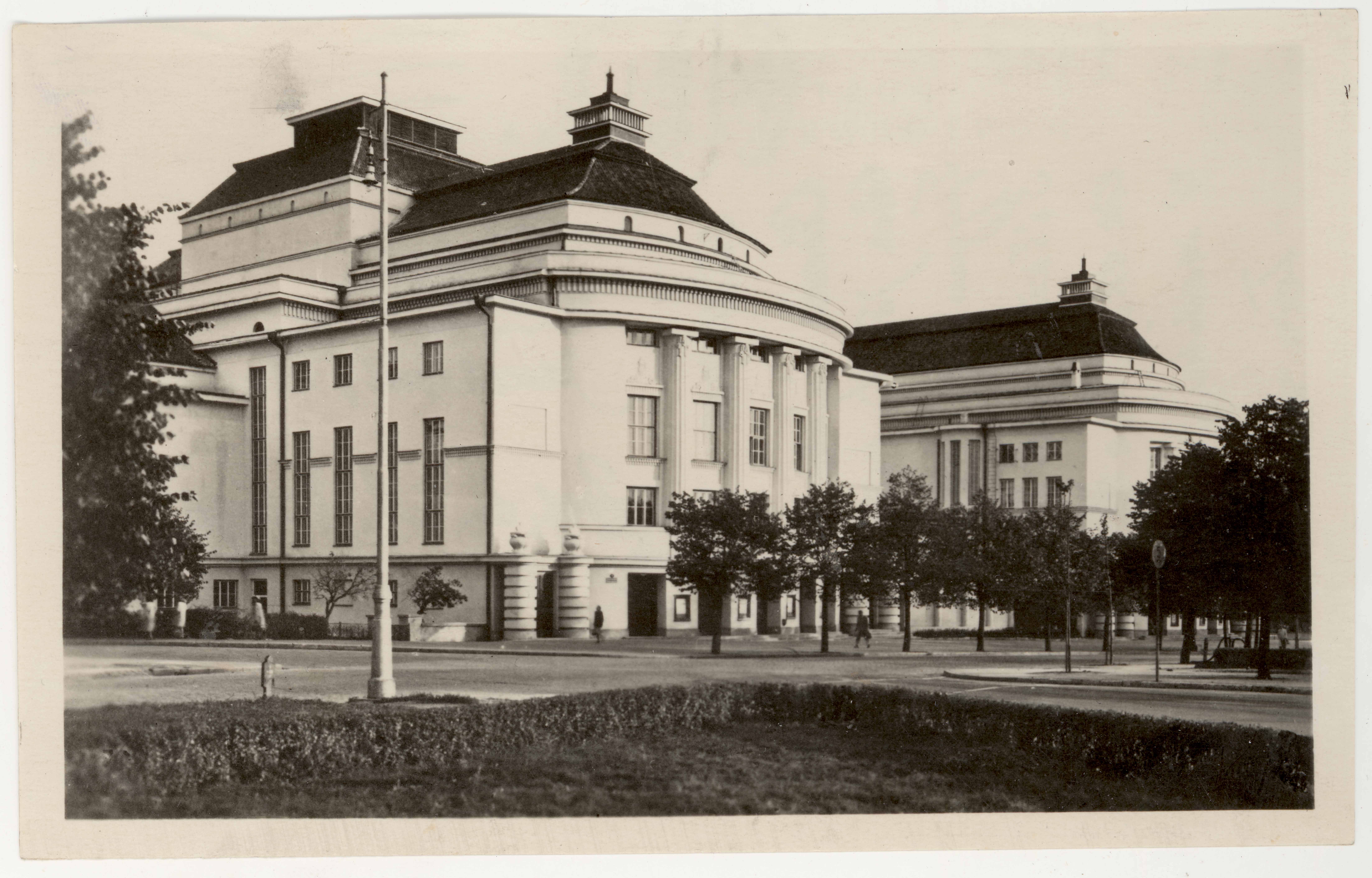 Tallinn. Estonia teatri peafassaadi vaade lõunast Sakala tänavast