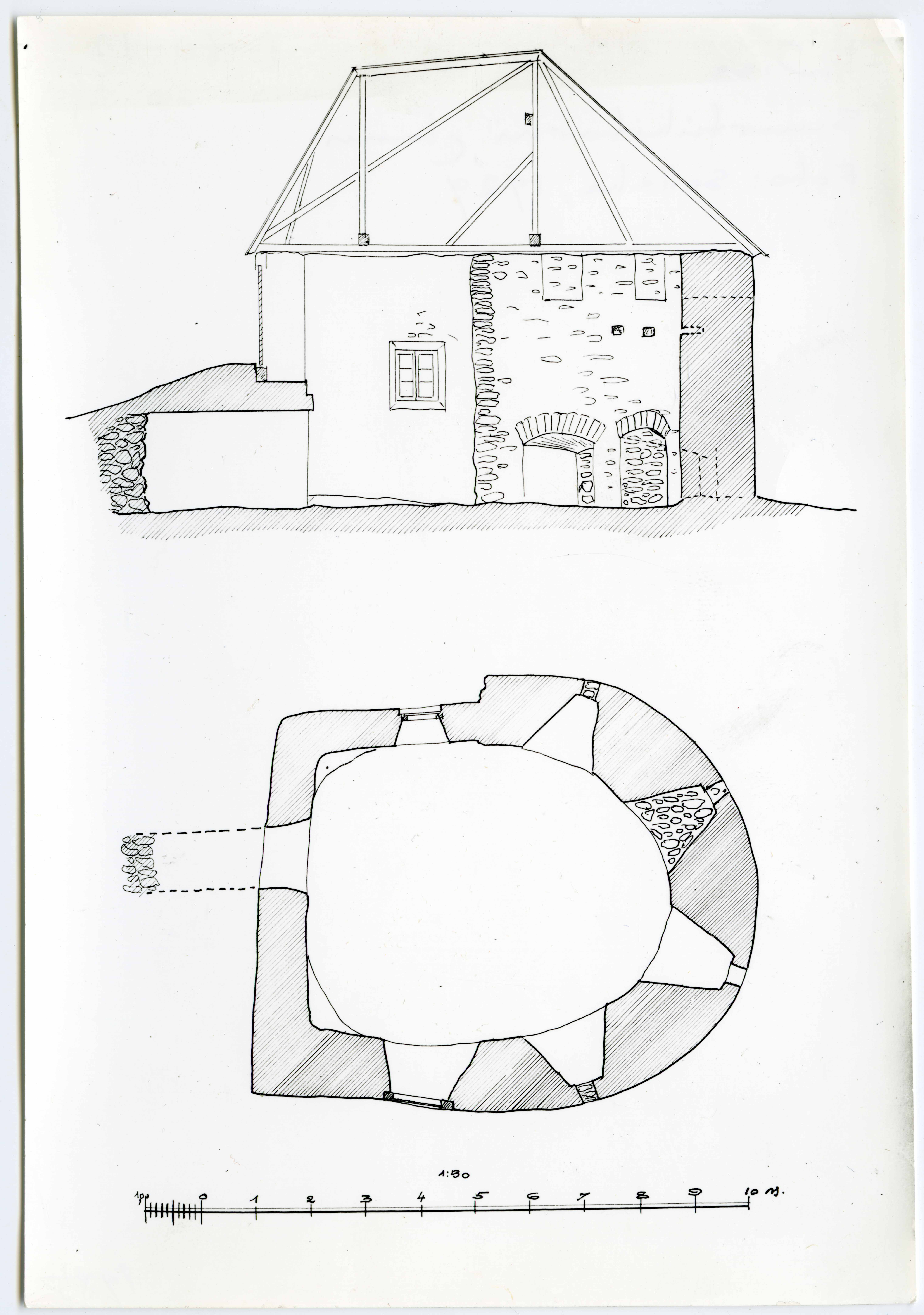 Padise kloostri NO-nurga haakpüssitorni põhiplaan ja läbilõige mõõtkavaga