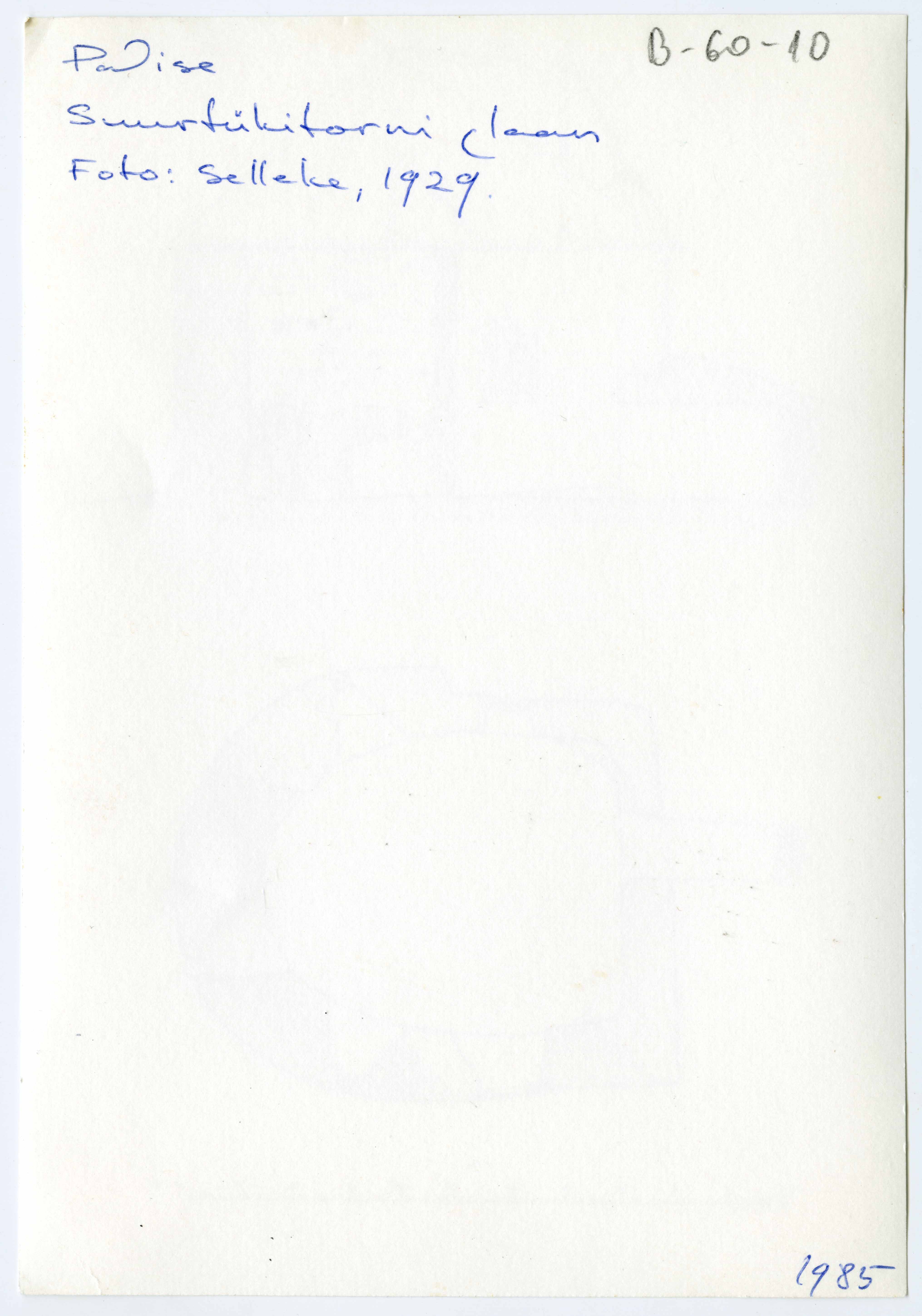 Tekst foto tagaküljel: Padise. Suurtükitorni plaan. Foto: Selleke, 1929. (1985)
