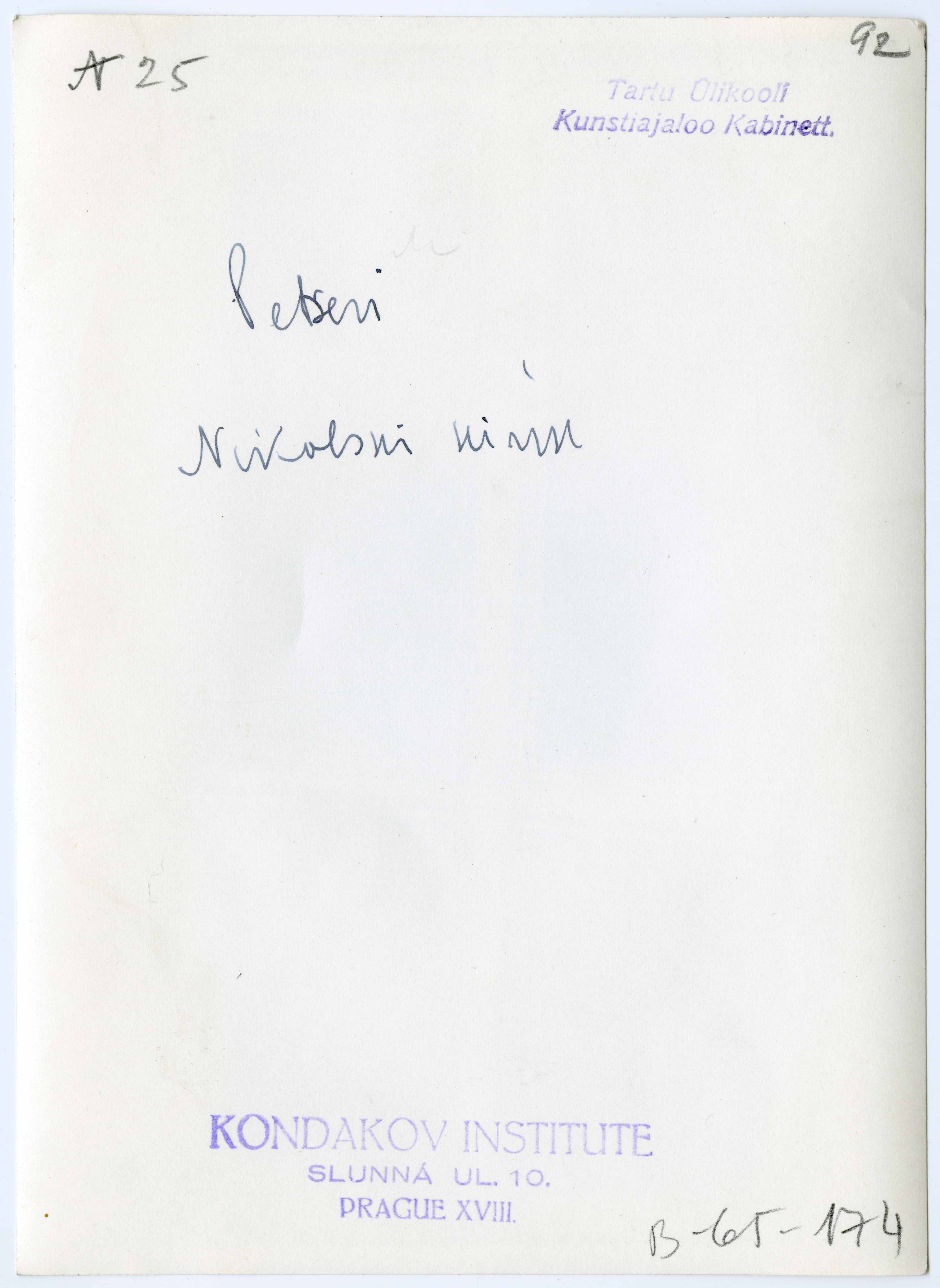 Tekst foto tagaküljel: Petseri. Nikolski kirik. N25. Templid: Kondakov; Kabinett