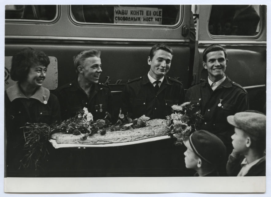 Grupp Tartu ülikooli üliõpilastest uudismaalasi Tartu jaamas 27. septembril 1964