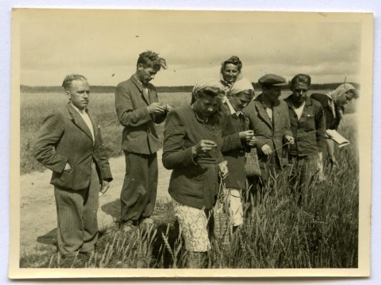 Tartu ülikooli agronoomia III kursuse üliõpilased Raadil teraviljade tunnustamise praktikal. Grupipildid