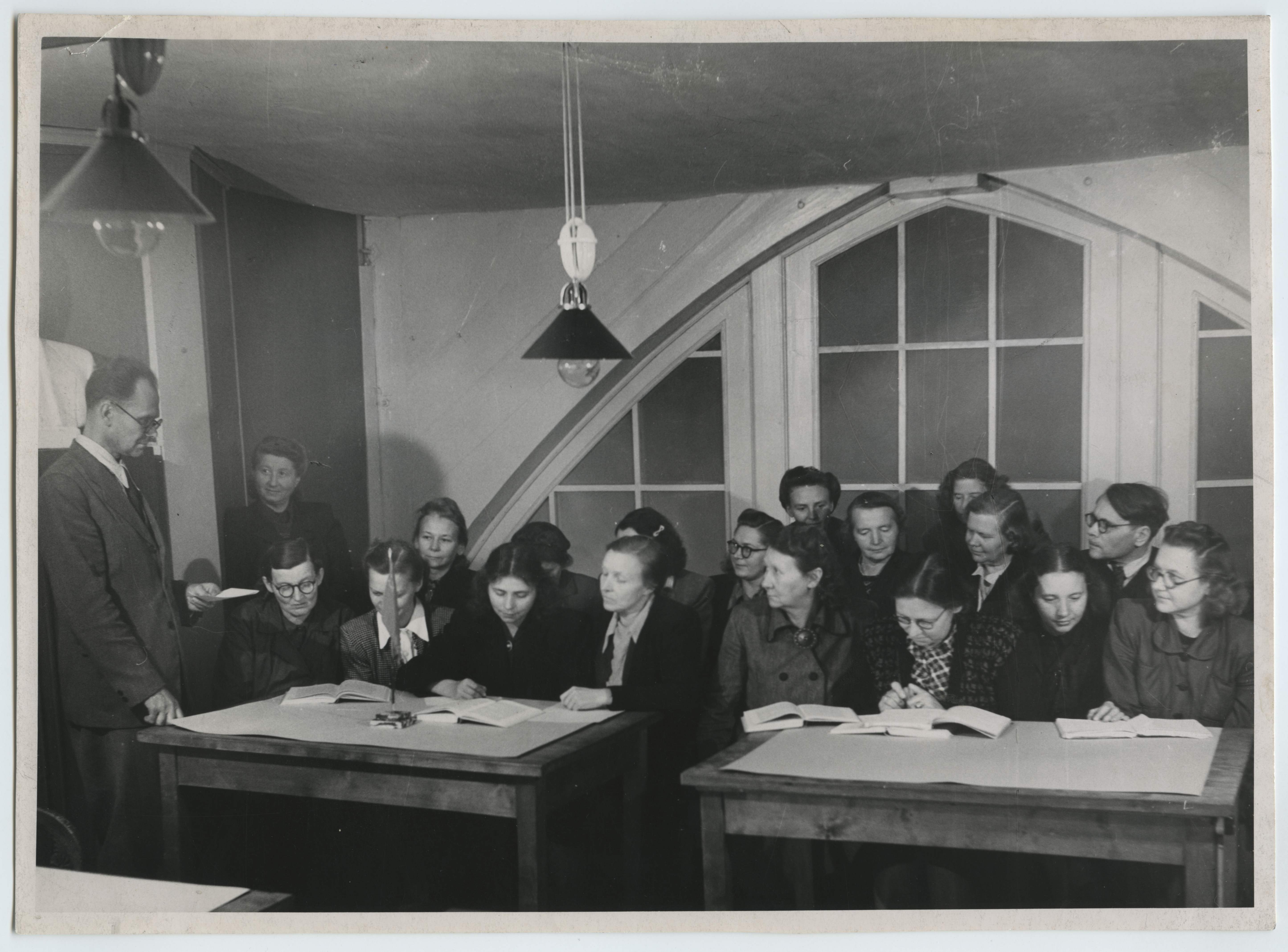 Tartu ülikooli raamatukogu töötajad Karl Taevi juhendamisel NLKP XIX kongressi materjale õppimas
