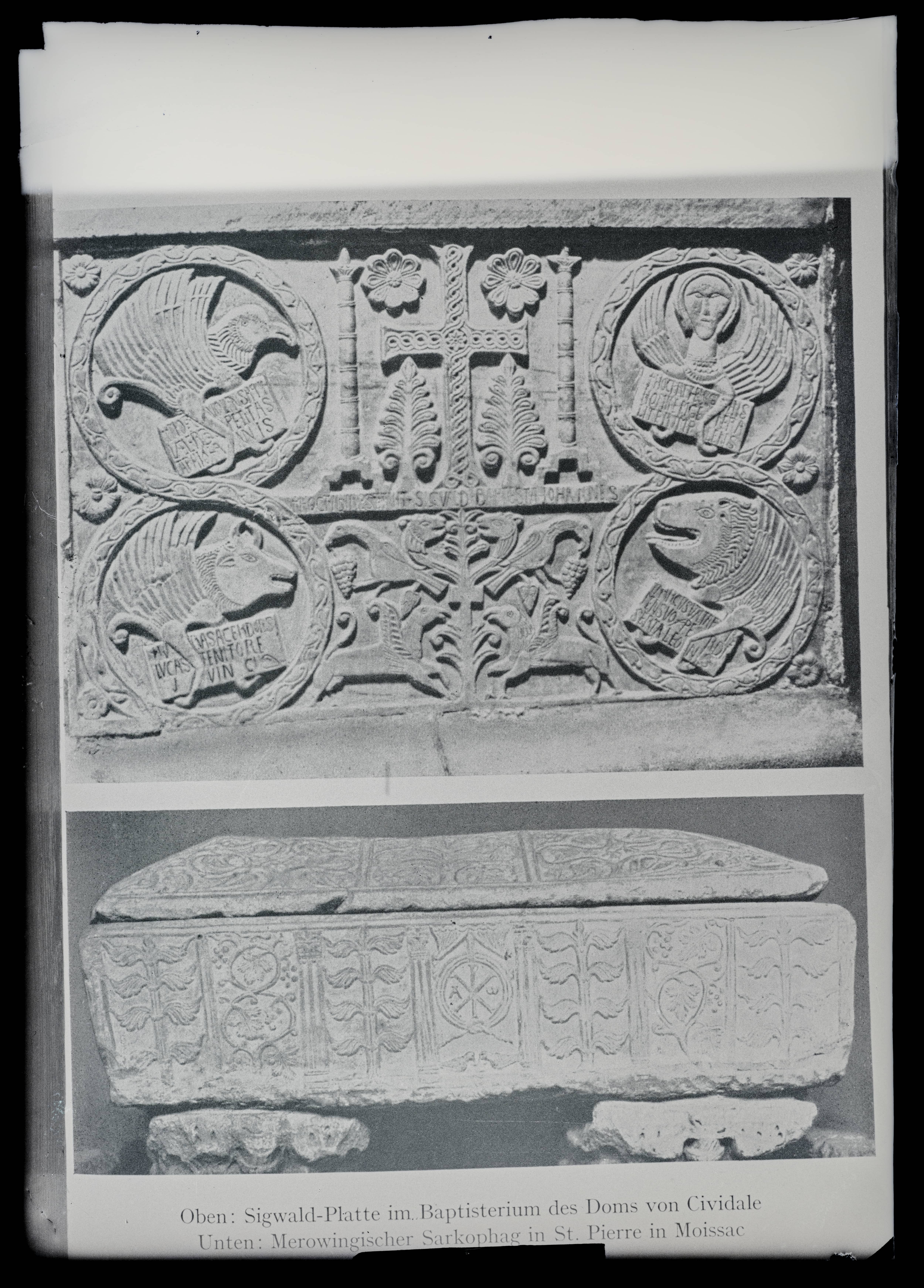 Hauaplaat Cividale'st (Itaalia) ja merovingide sarkofaag Moissacist