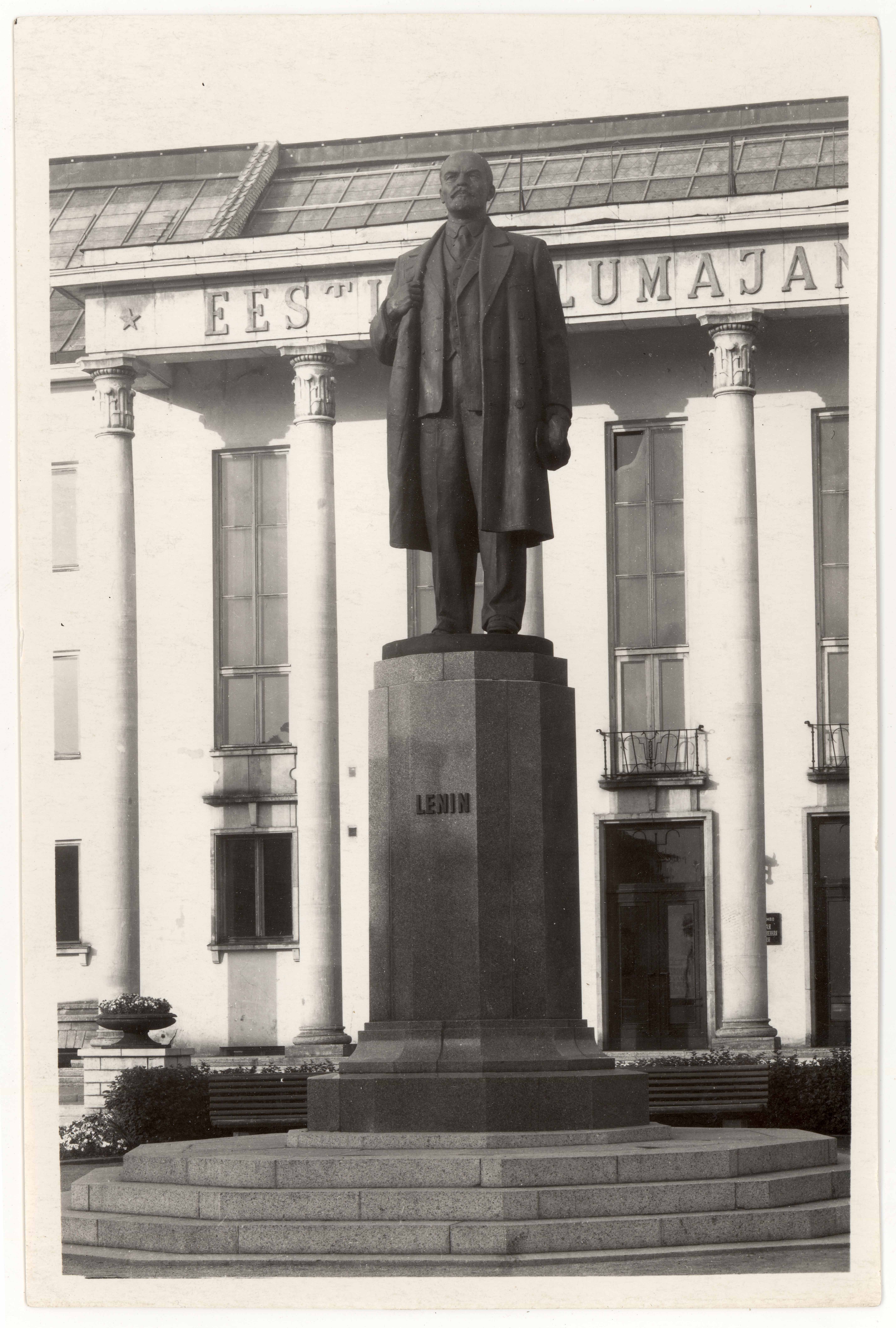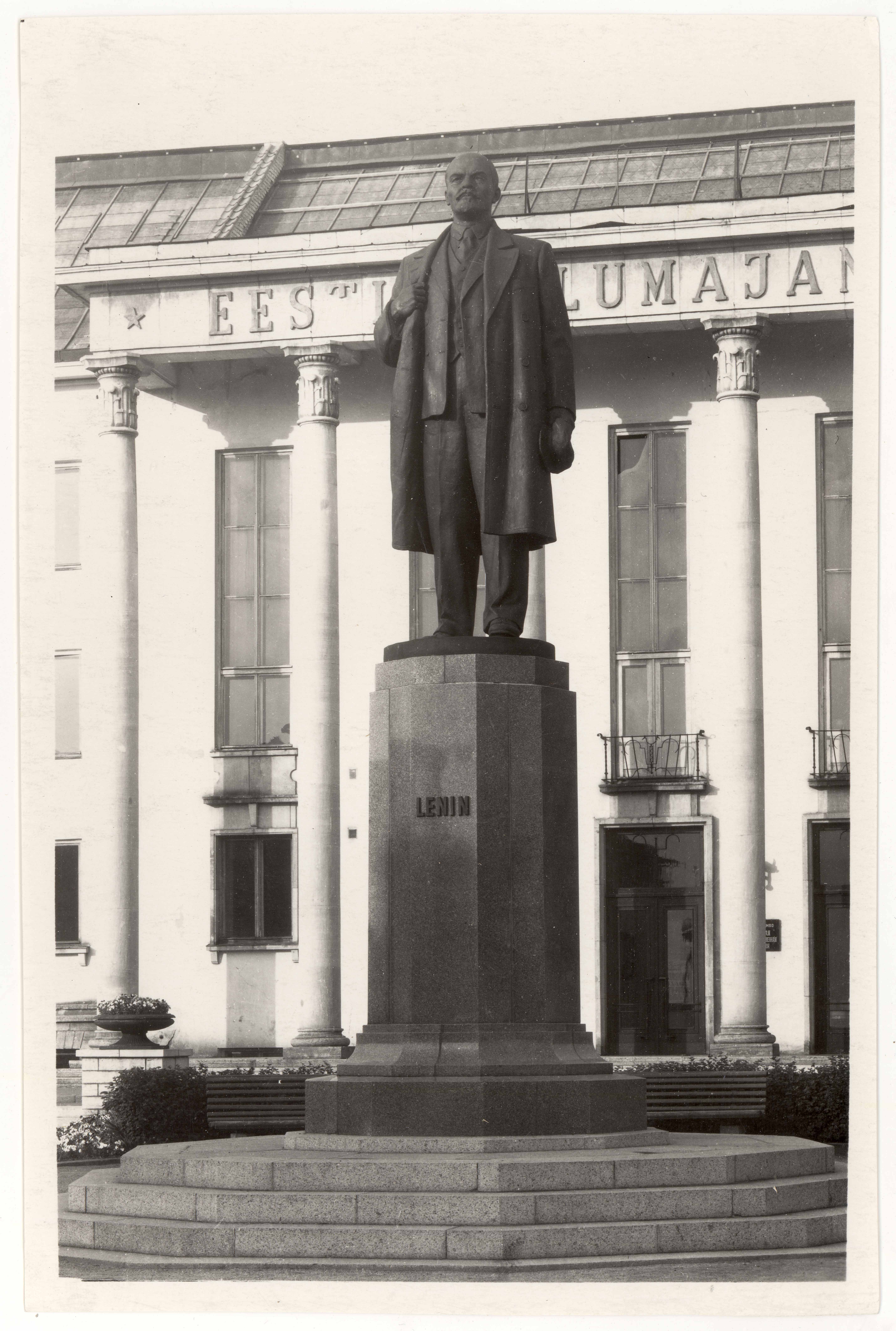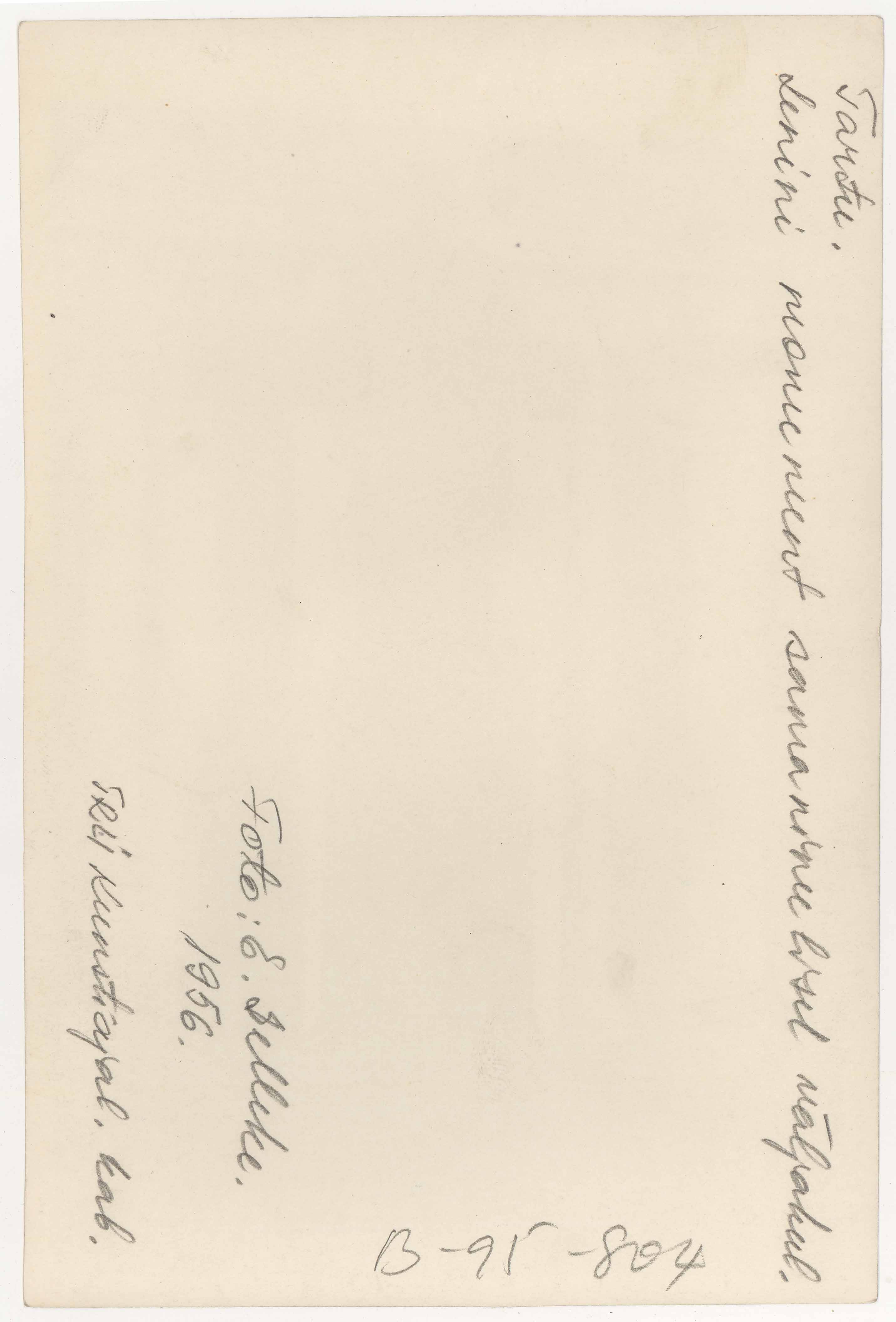 Tekst foto tagaküljel: Tartu. Lenini monument samanimelisel väljakul. Foto: E. Selleke. 1956. TRÜ Kunstriajal kab.