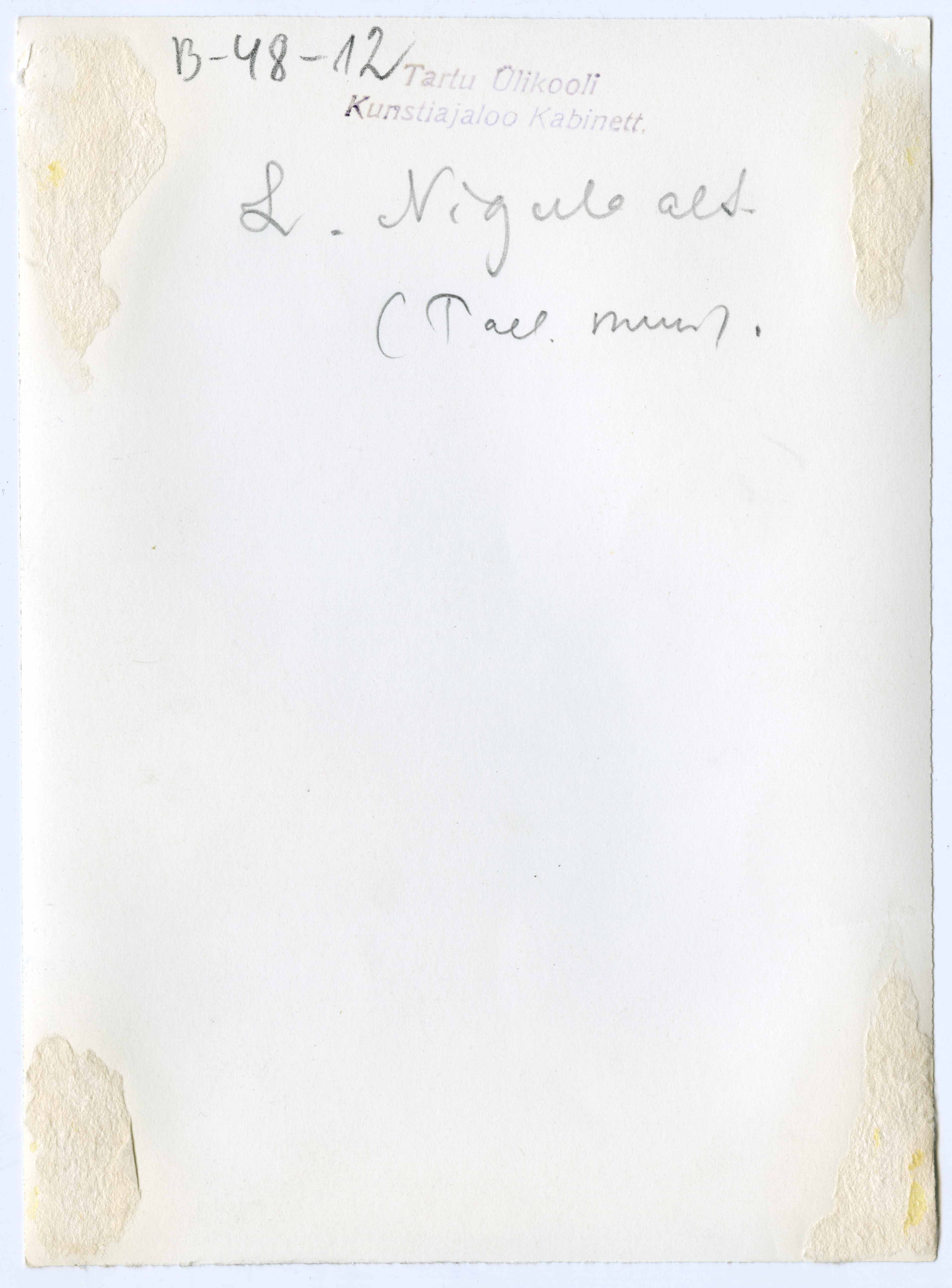 Tekst foto tagaküljel: L. Nigula altar (Tall. muus). Templid: Kabinett