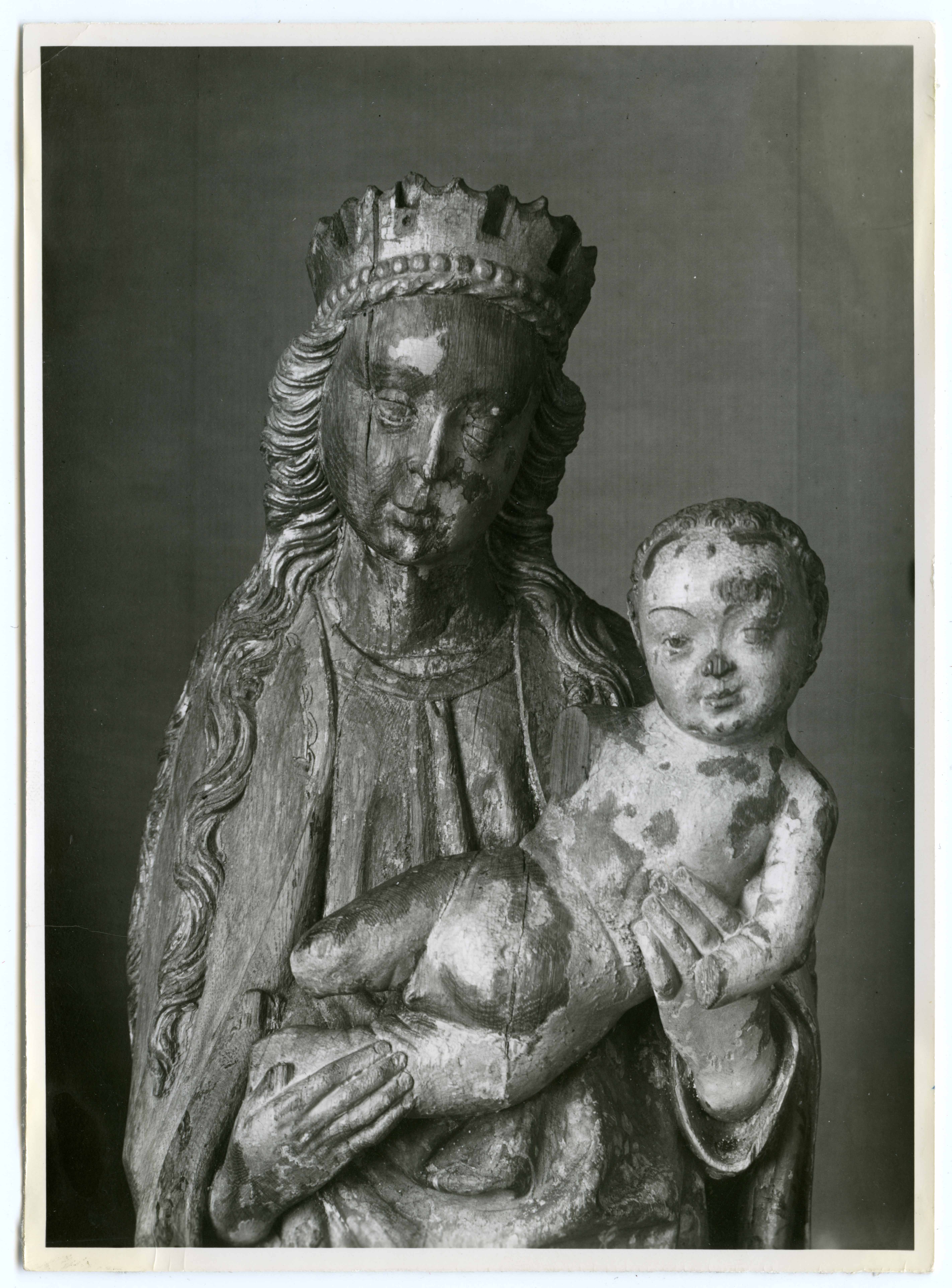 Lääne-Nigula kirik. Lübeckist toodud hilisgooti altari Maarja ja Jeesus-lapse figuuri detail. Eestvaade. Henning von der Heide /?/. Ca 1510. Praegu asuvad Eesti Kunstimuuseumis