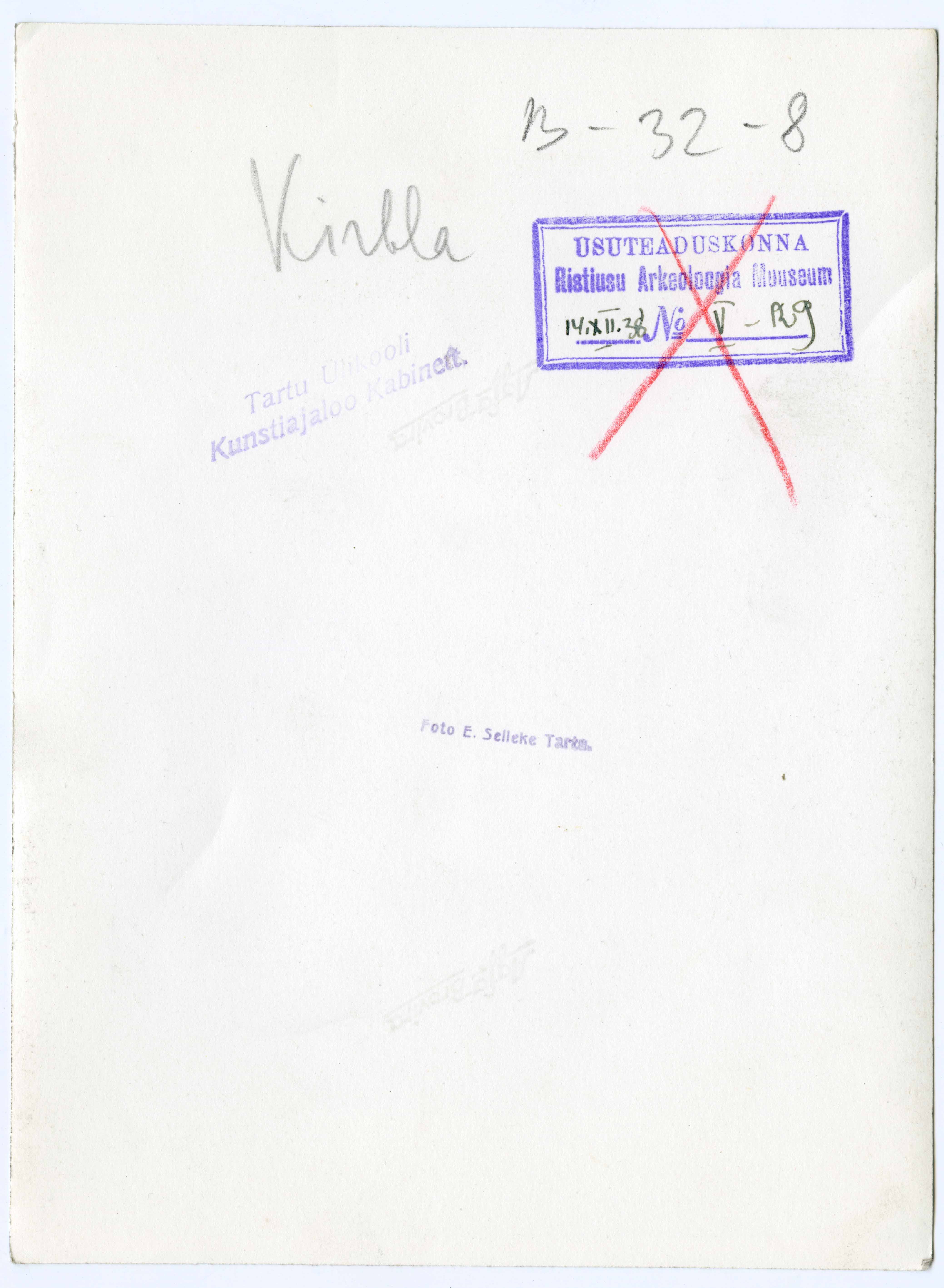| dc.description | Tekst foto tagaküljel: Kirbla. Templid: E. Selleke; Kabinett; RAM 14. XII.38 No V-129 | et |