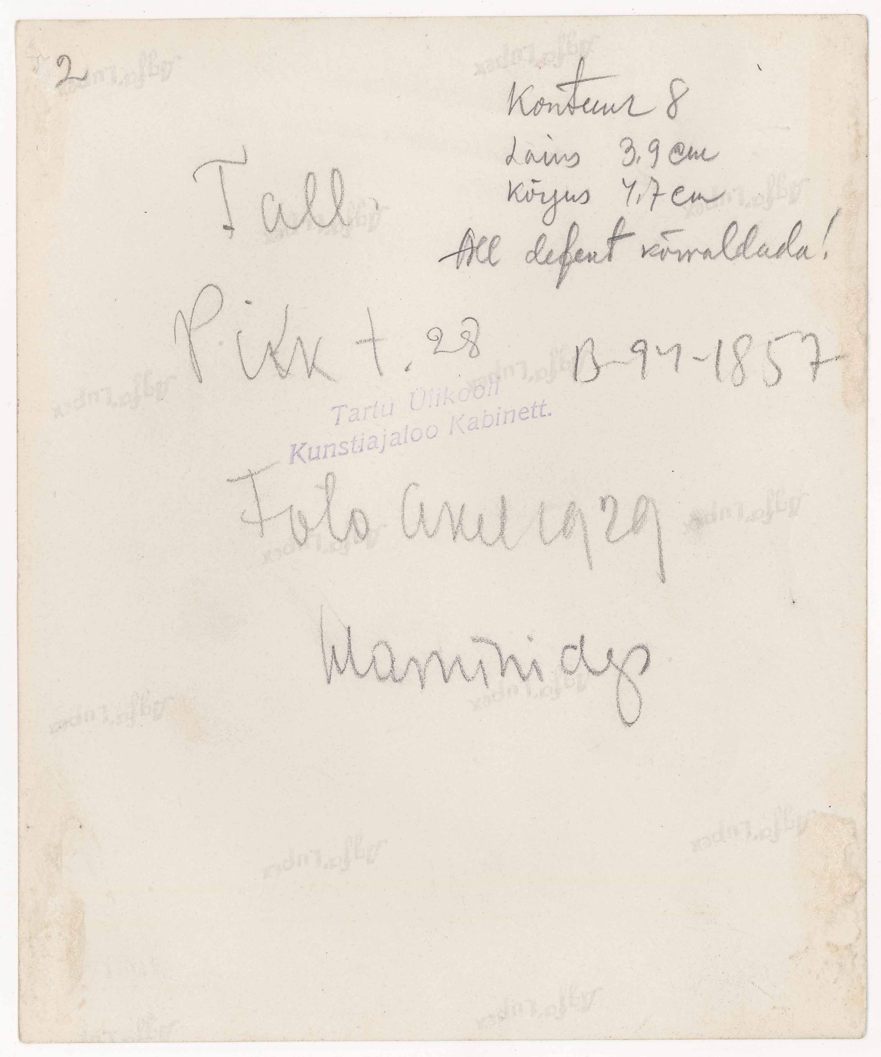 Tekst foto tagaküljel: Tall. Pikk t.28. Foto Akel 1929. Hamini dep. Tempel: Kabinett
