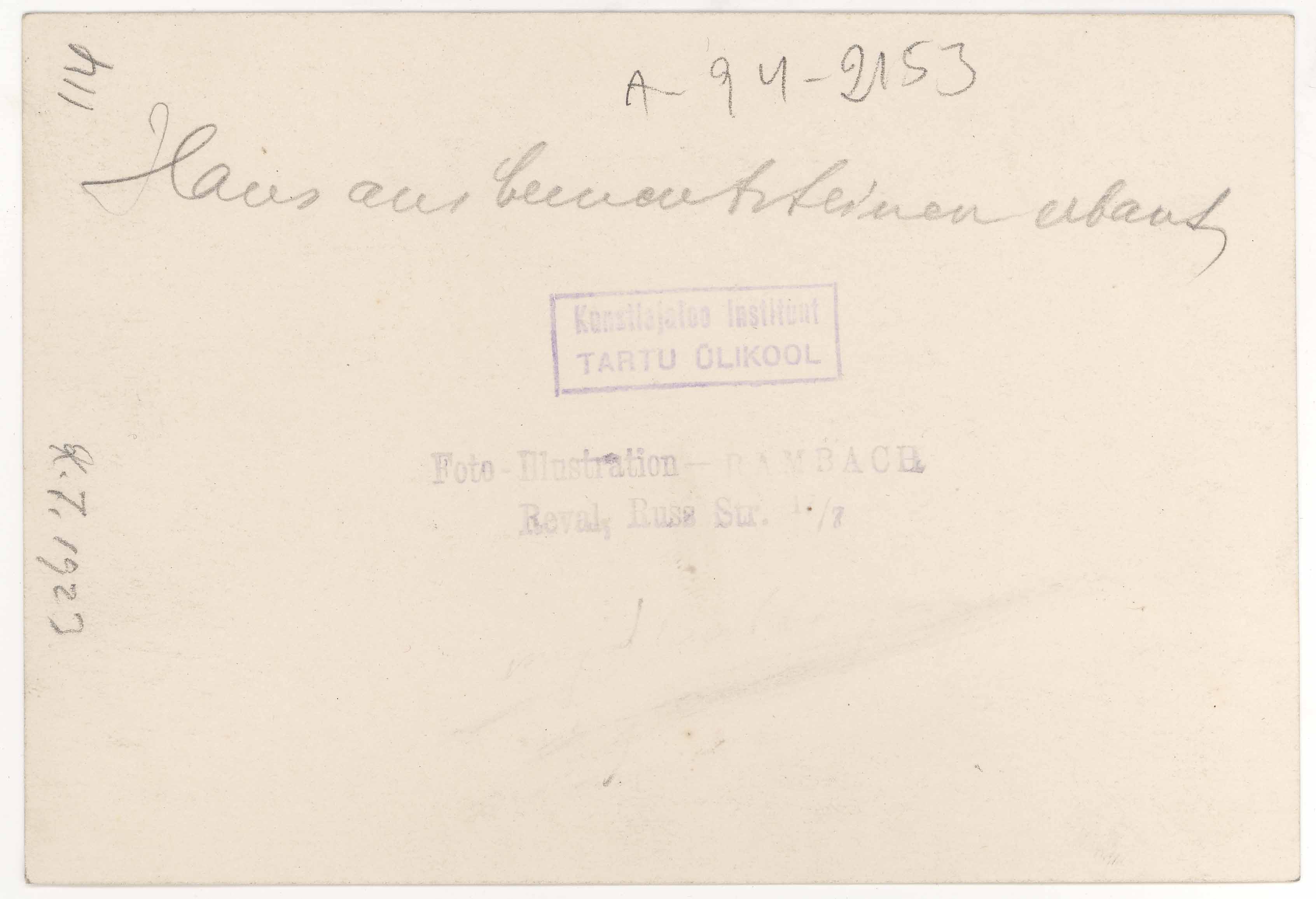 | dc.description | Tekst foto tagaküljel: Haus aus ...steinen erbaut. K. I. 1923. Tempel: Rambach; Instituut | et |