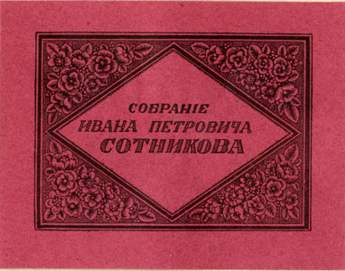 Ristküliku sees romb, ristküliku nurkades lillornament. Joonises keskel: СОБРАНIЕ / ИВАНА ПЕТРОВИЧА / СОТНИКОВА;"Sotnikov