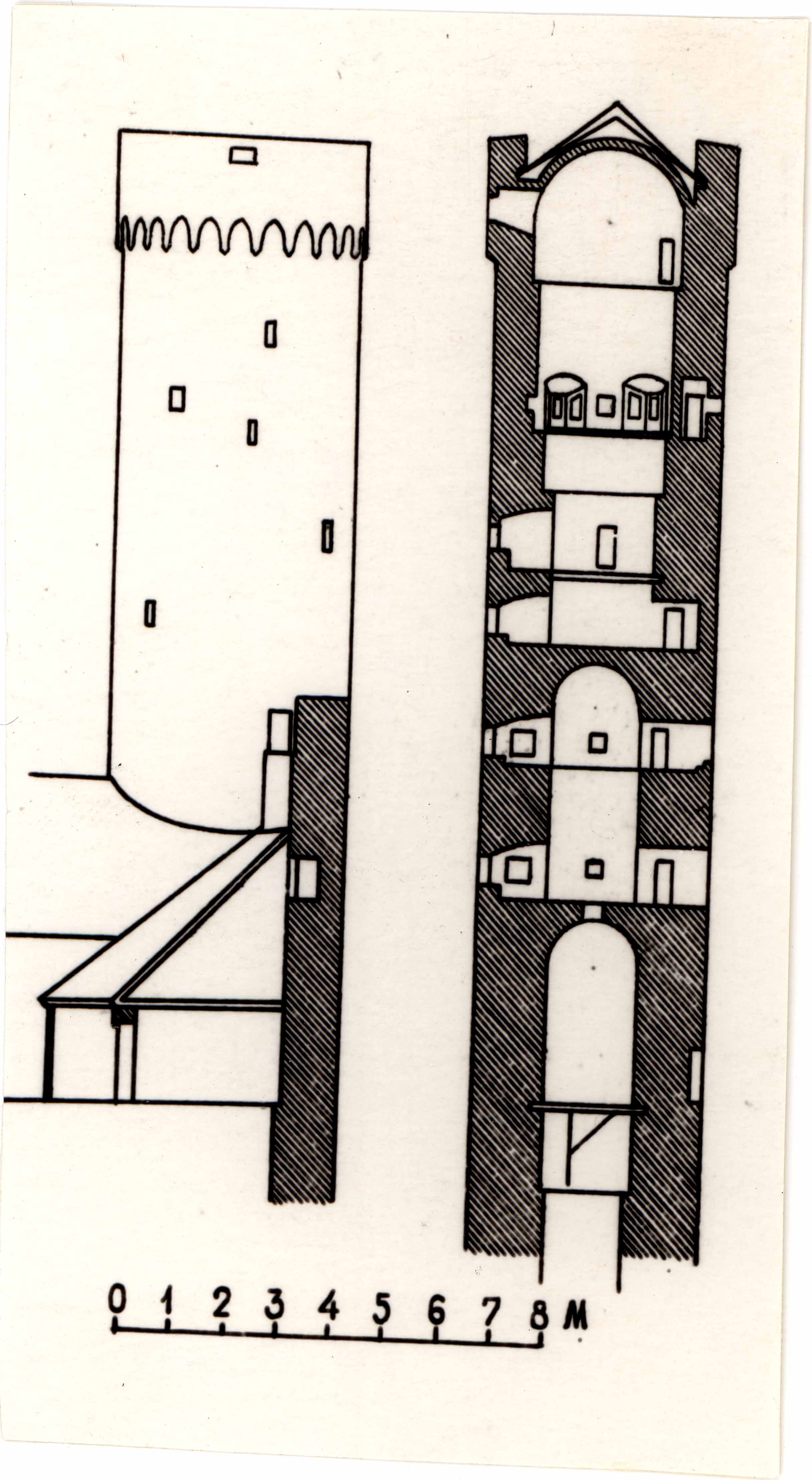 Tallinn. Toompea linnuse Pika Hermanni torni välisvaade N-st ja läbilõige (1859 Gableri projekti järgi)