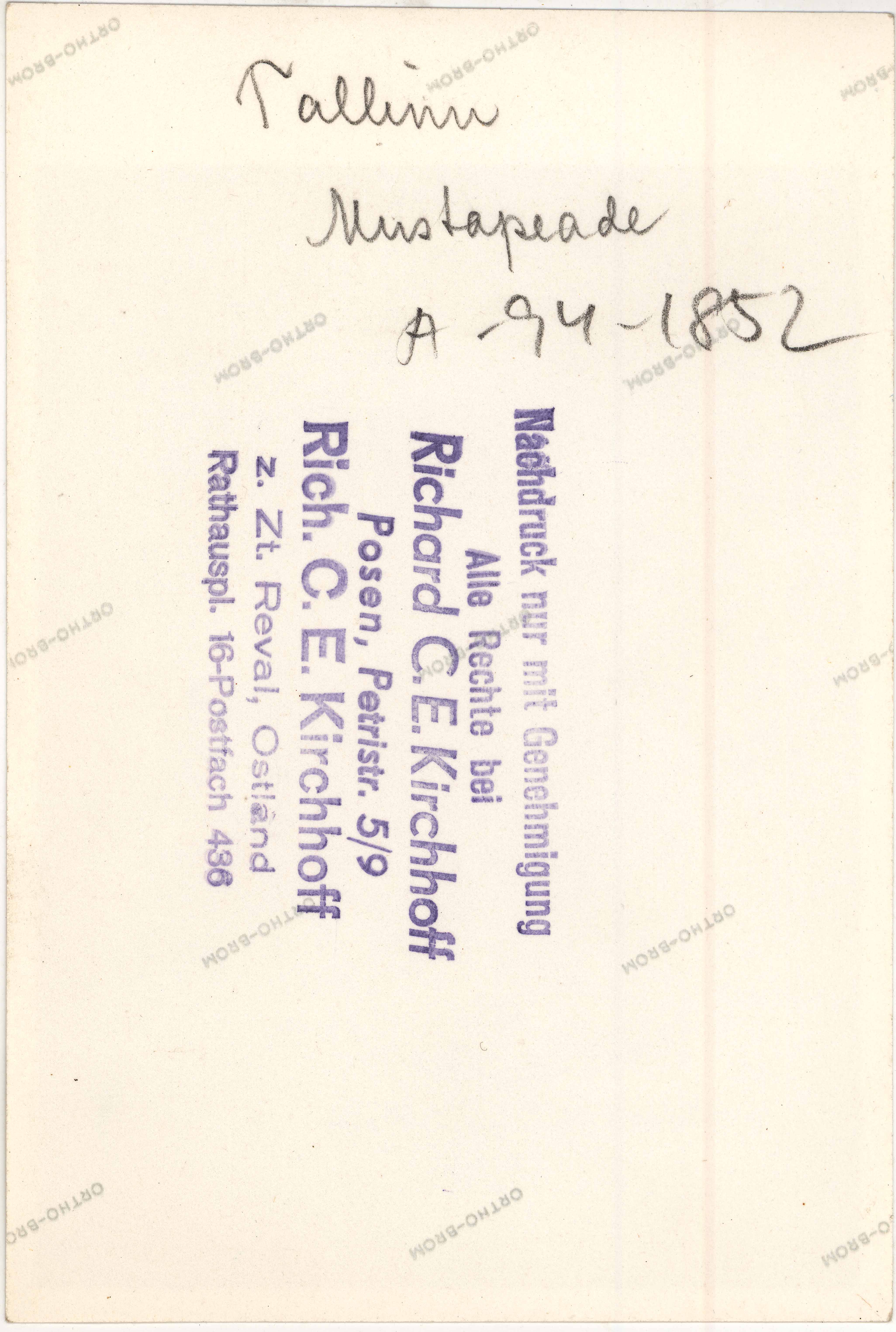 Tekst foto tagaküljel: Tallinn. Mustpeade. Tempel: Kirchhoff
