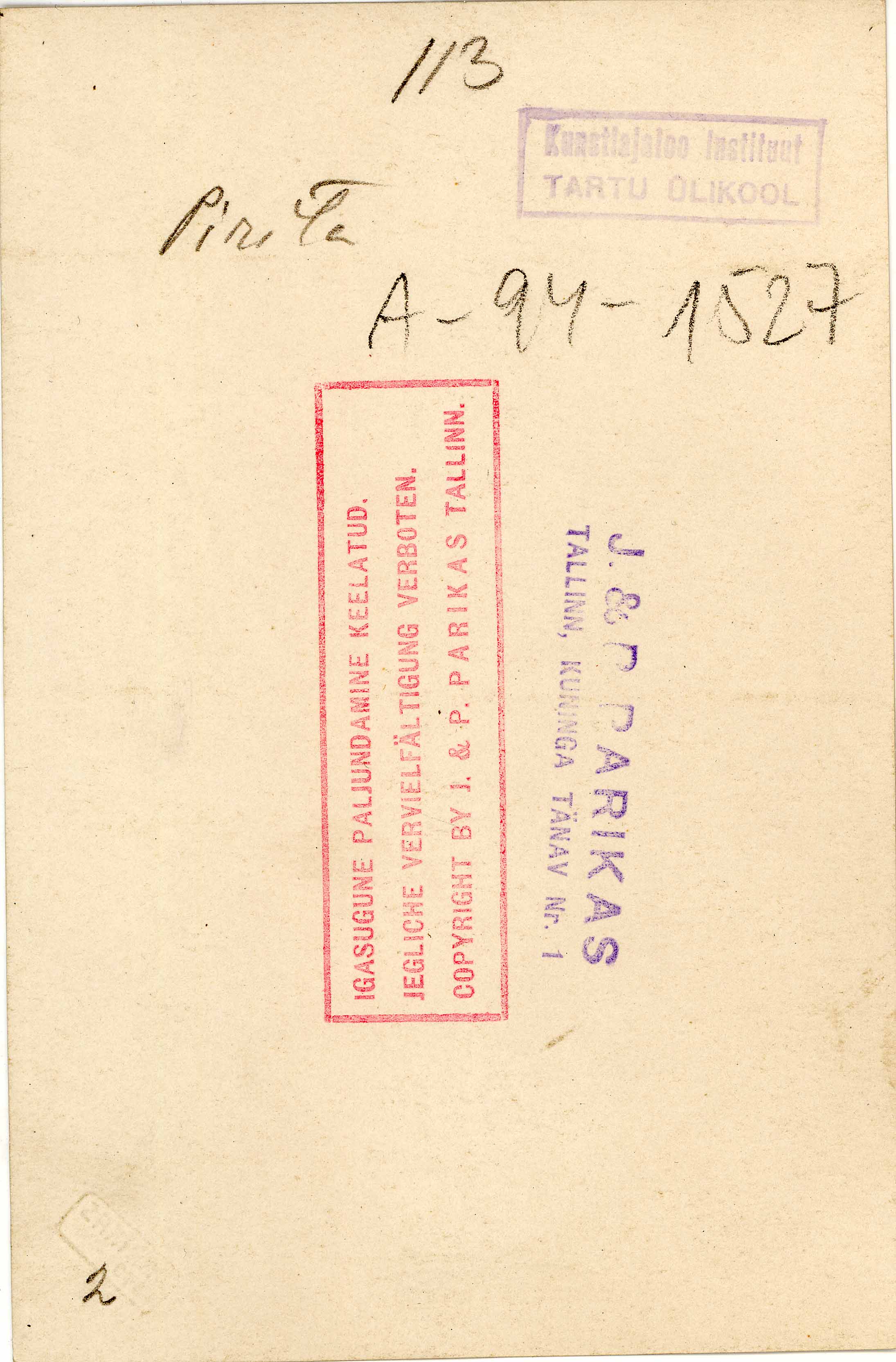 Tekst foto tagaküljel: 113. Pirita. Templid: J&P, Instituut