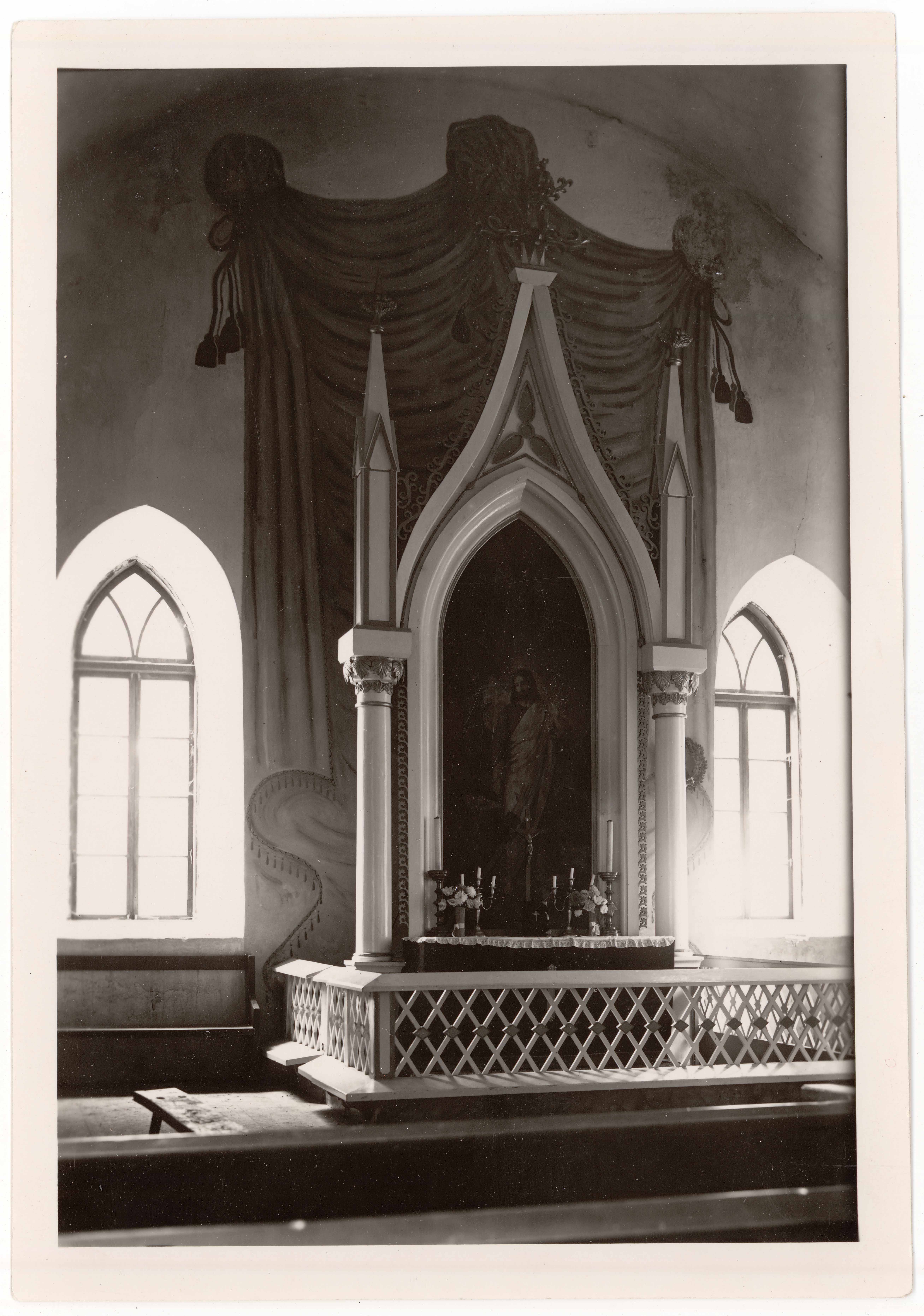 Tekst foto tagaküljel: Jamaja kiriku altar. Juuli 1931. Foto: K. Kalamees