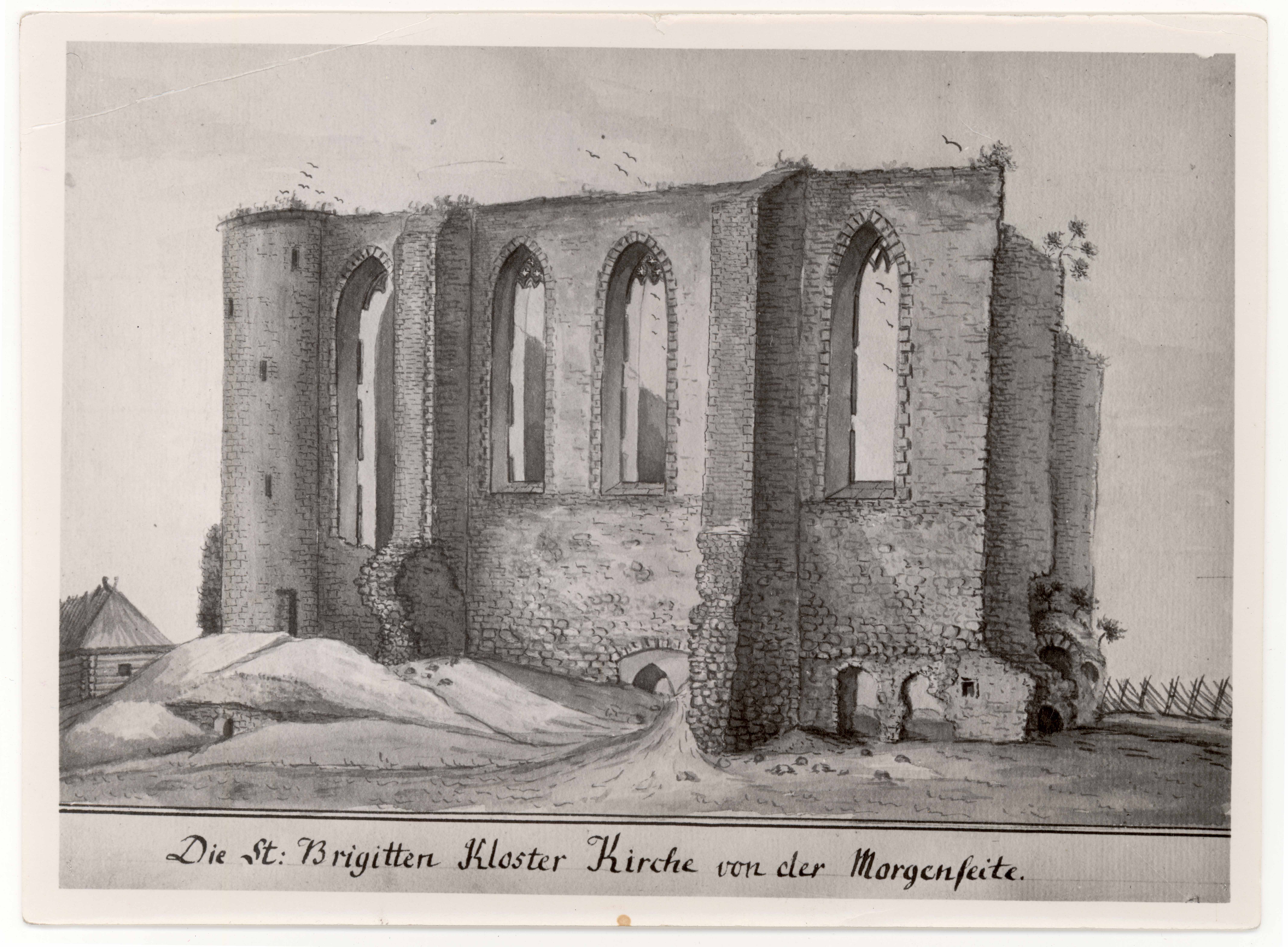 Tekst foto tagaküljel: Pirita. Vaade Pirita kloostrikiriku varemetele idast. E. Körberi j. Tempel: Kabinett