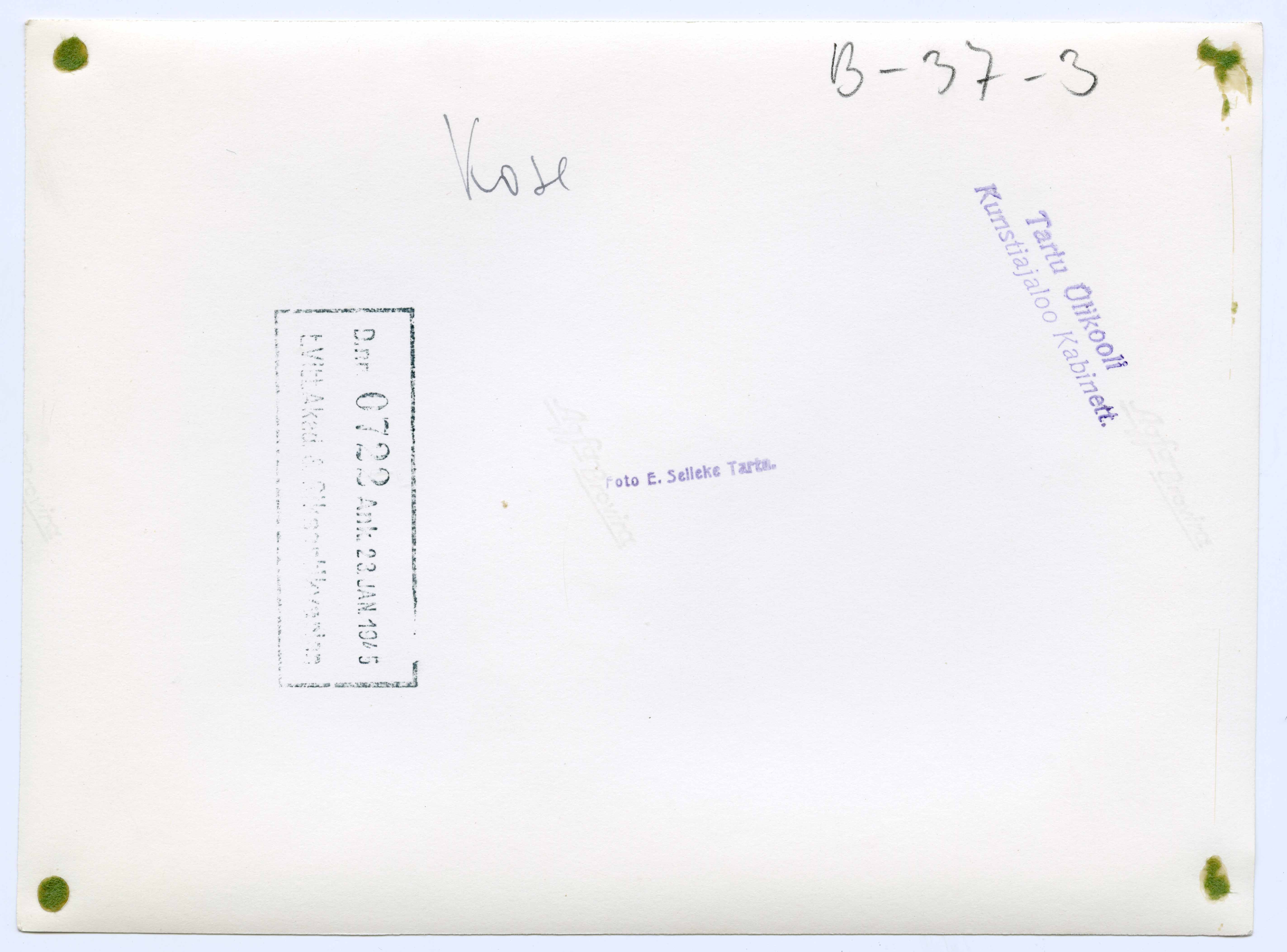 Tekst foto tagaküljel: Kose. Templid: E. Selleke; Kabinett; 0722 23.JAN 1945 Vitterh