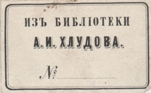 Nelinurkses raamistuses: ИЗЪ БИБЛIОТЕКИ / А. И. ХЛУДОВА. / №__;"Иваск