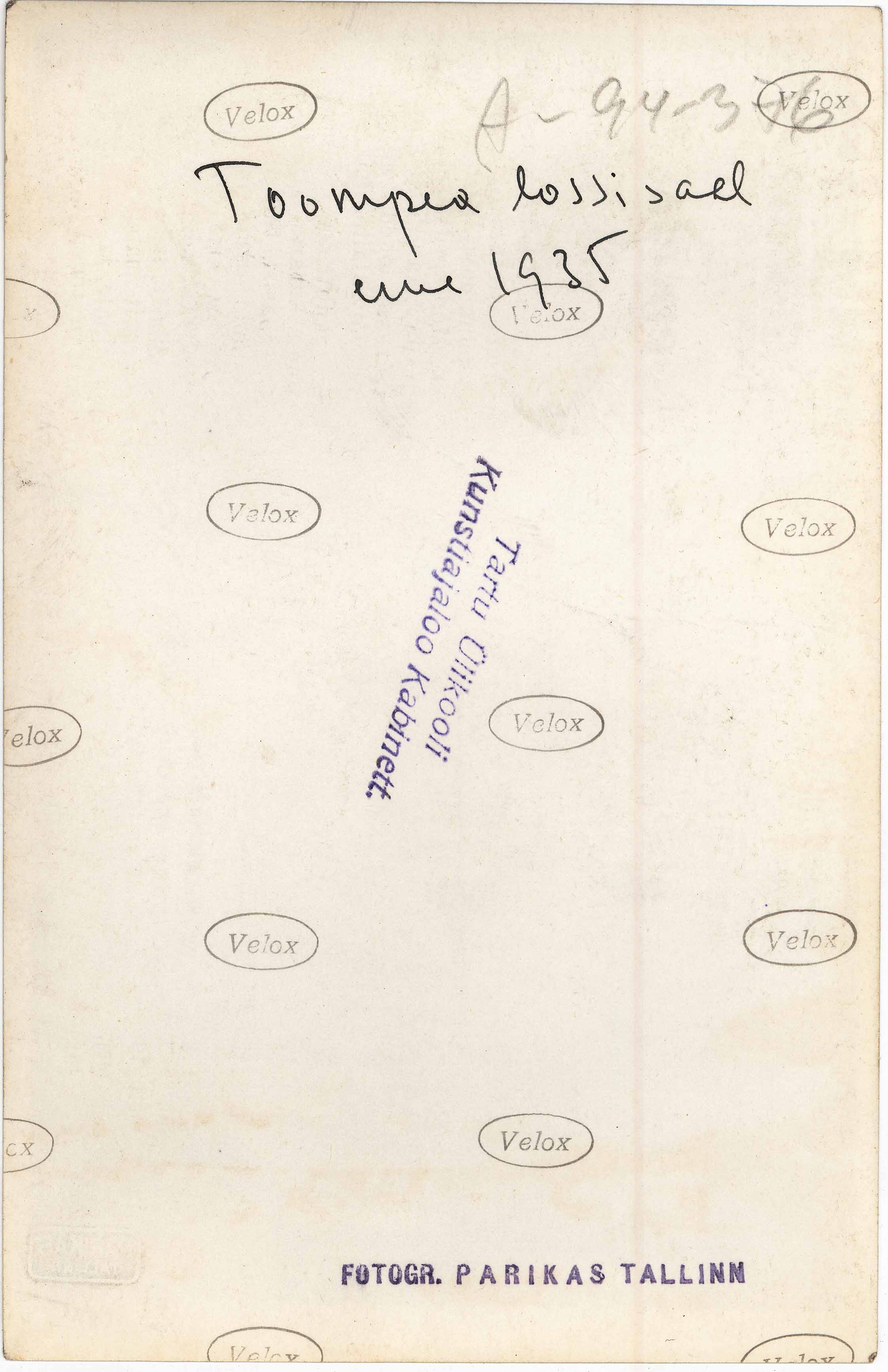 Tekst foto tagaküljel: Toompea lossi saal enne 1935. Templid: Fotogr Parikas; Kabinett