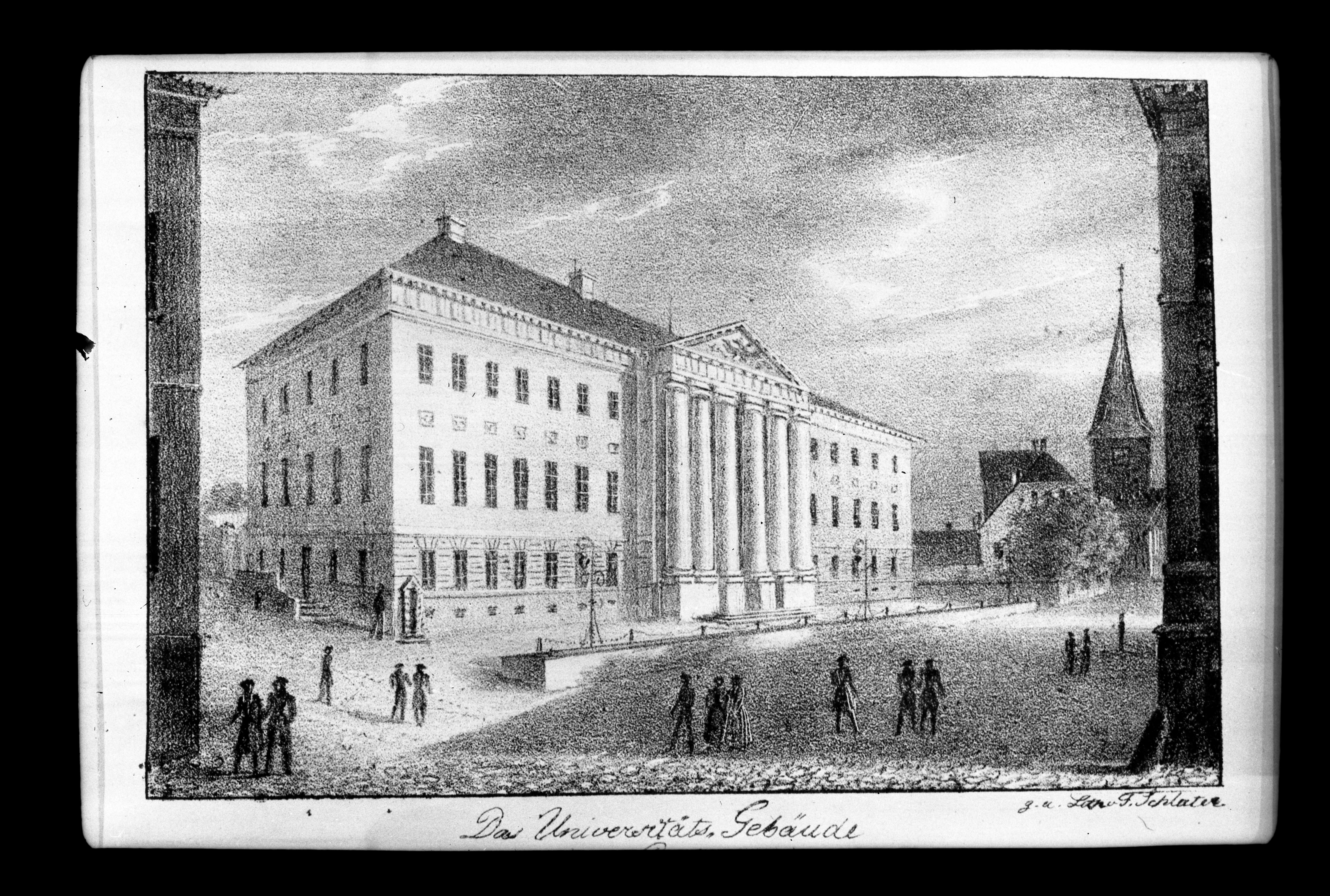 Tekst negatiivi ümbrikul: Schlater. I 6 Das Anatomicum 1832. Vaade vanale anatoomikumile vastaspoolselt Vallikraavi tn-lt. ÜR 2936. I 1 ? Das Universitäts Gebäude ÜR 949 II V? Dom-Parthie in Dorpat Anatomicum ÜR950 [ümbrikus 3 negatiivi]