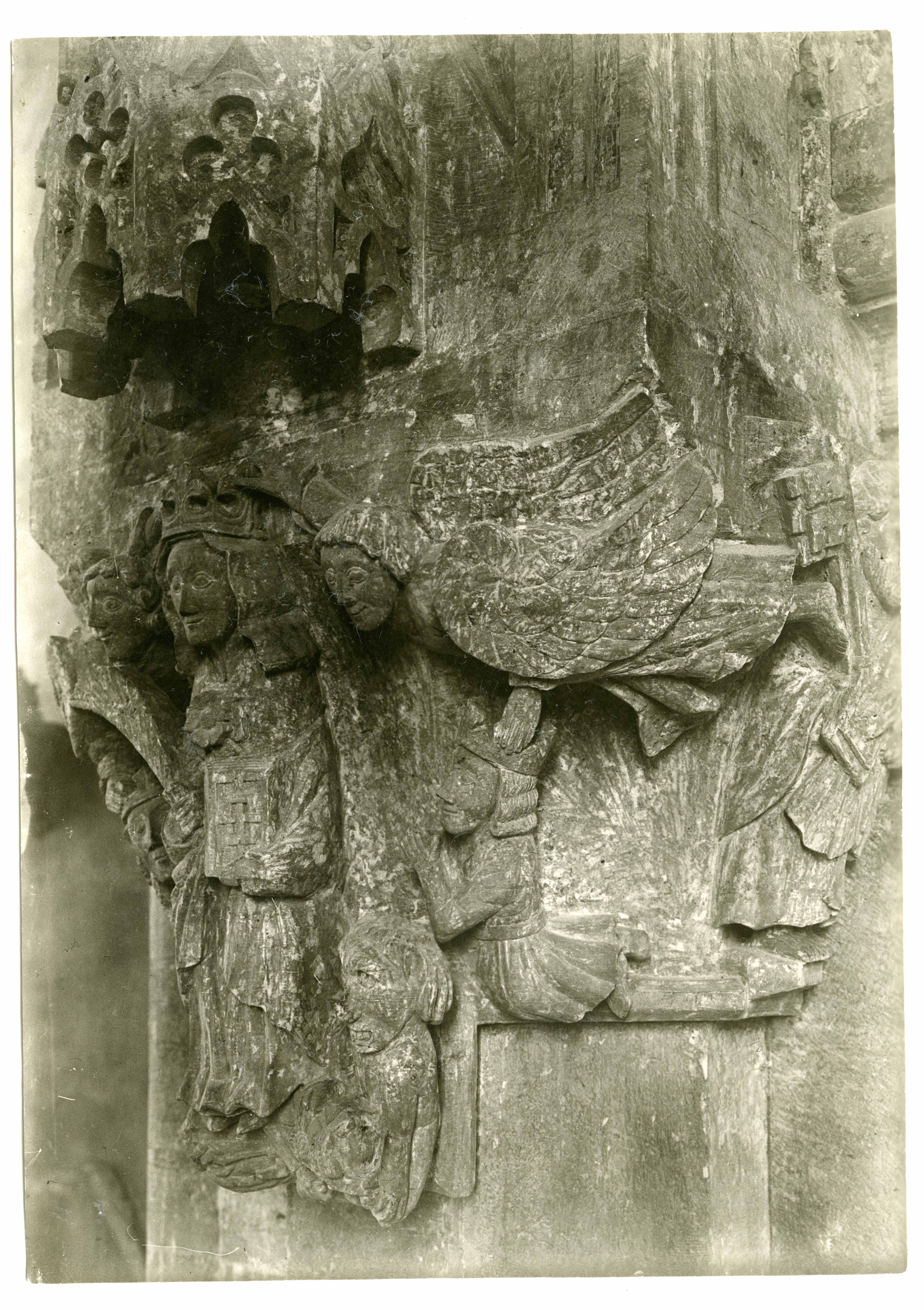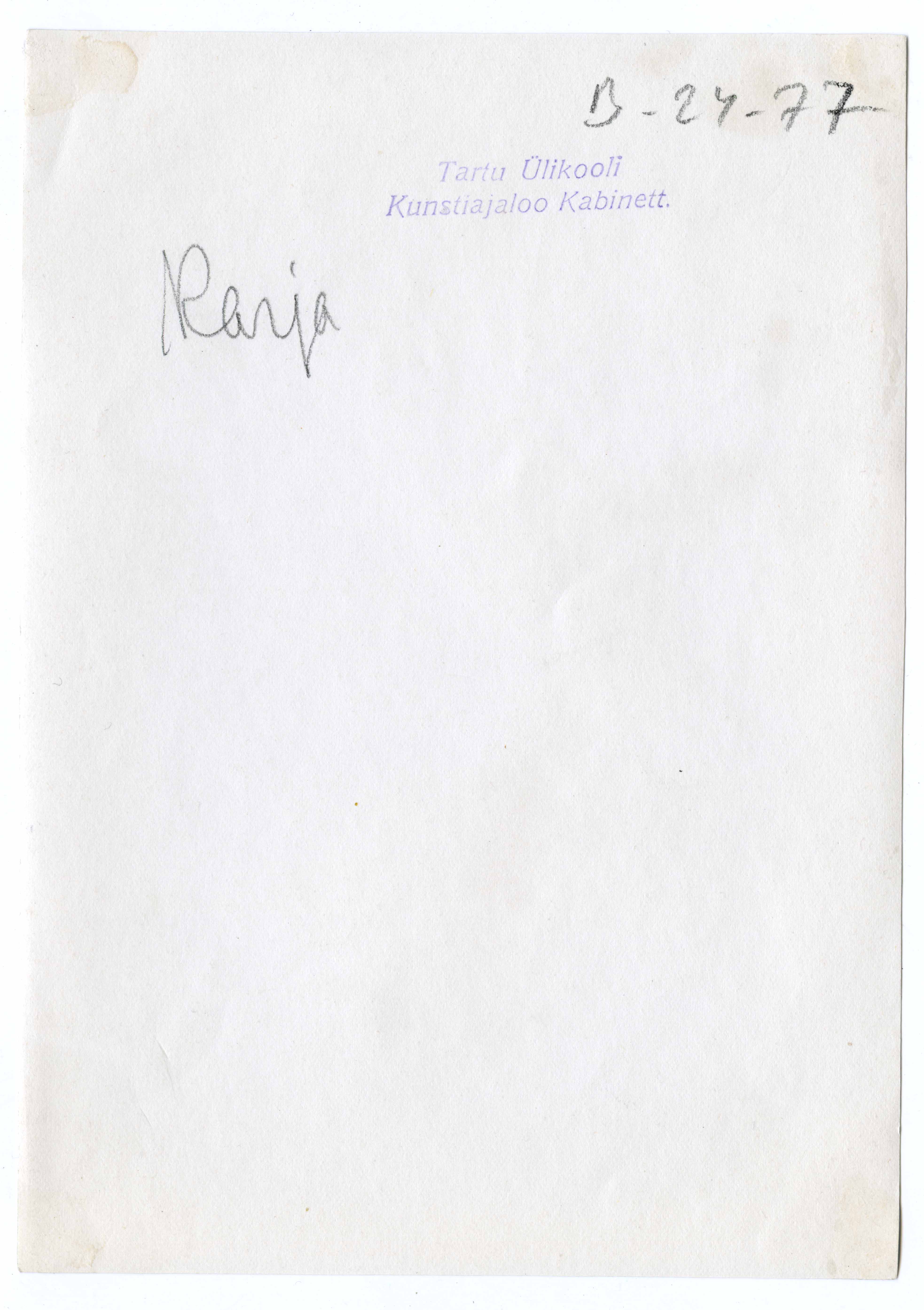Tekst foto tagaküljel: Karja. Triumfikaare skulptuur (põhjas) F: Grünthal, 1933. koopia: 1924 Kjellini fotost. (1986)