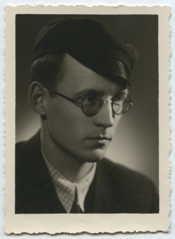 Limberg, Fred. Rindportree Tartu ülikooli üliõpilasena, üliõpilasmütsiga