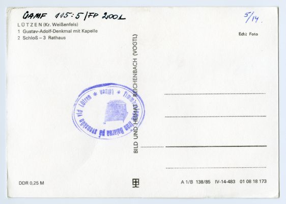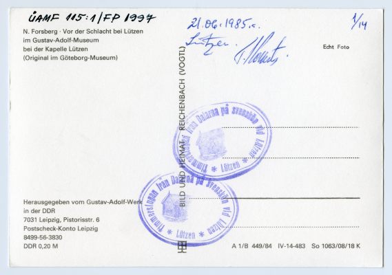 [Gustav II Adolfi mälestuspaik Lützenis 1985. a.]