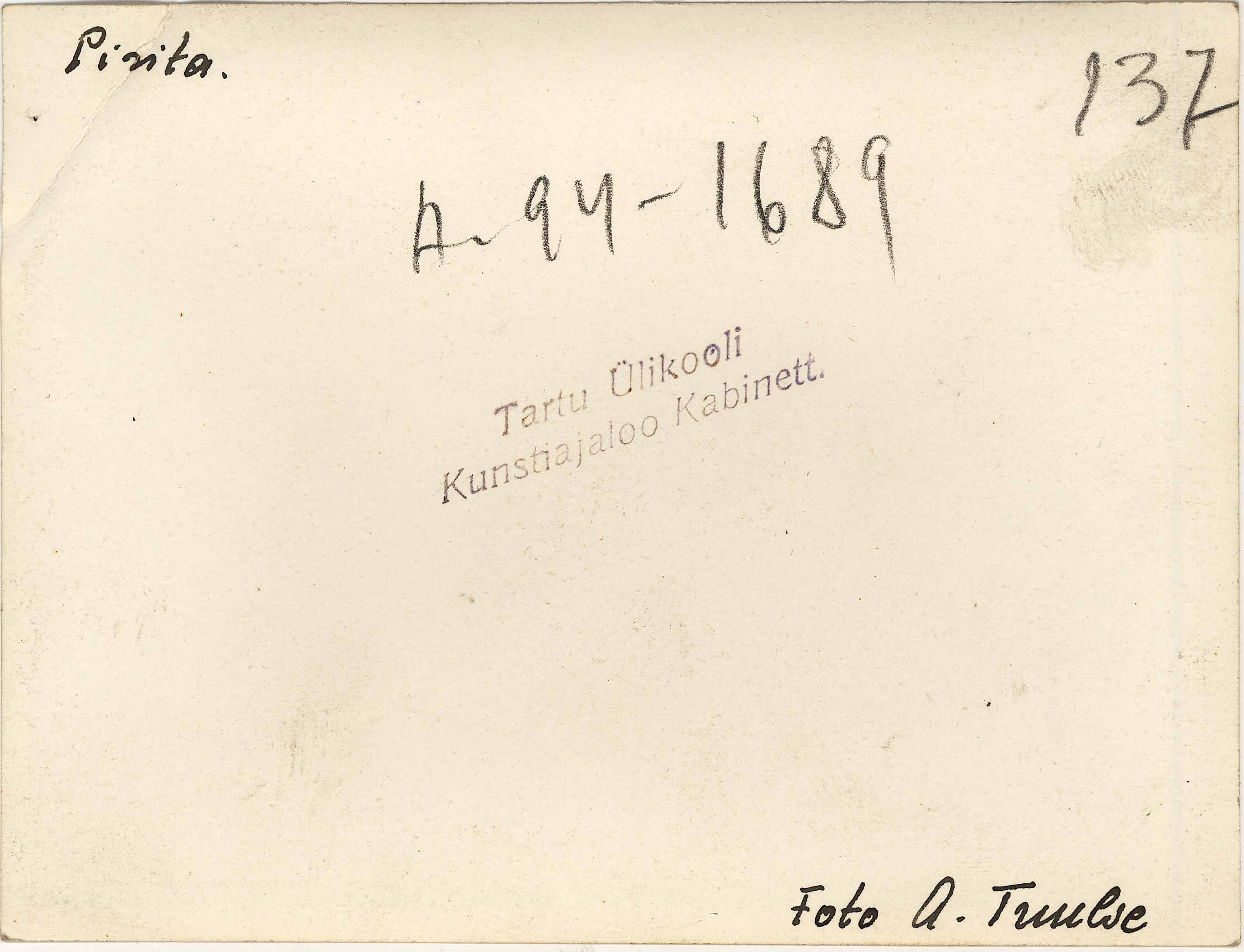 Tekst foto tagaküljel: Pirita. Foto A. Tuulse. Tempel: Kabinett
