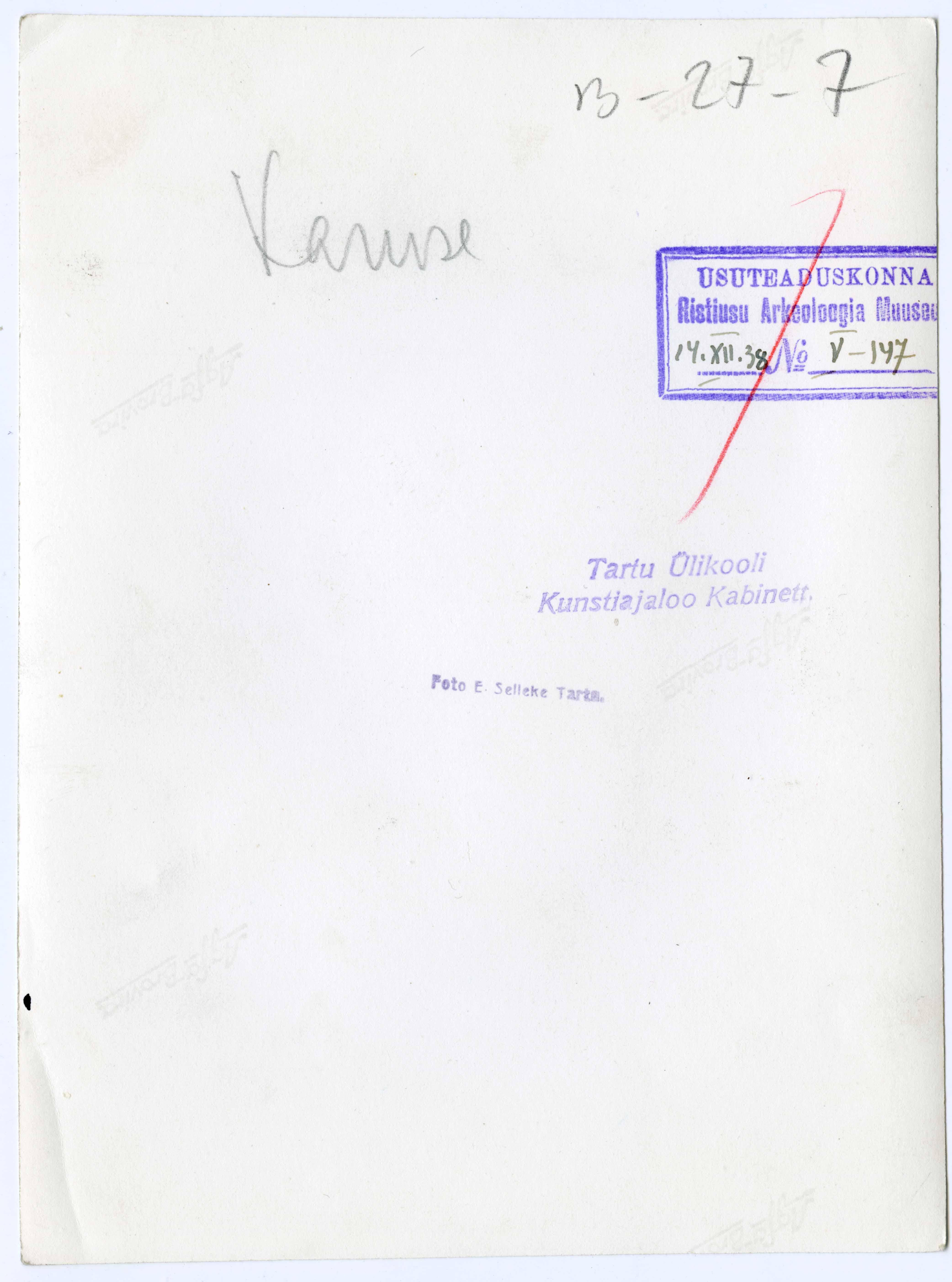 Tekst foto tagaküljel: Karuse. Templid: Kabinett; E. Selleke; RAM: 14.XII.38 No V-147