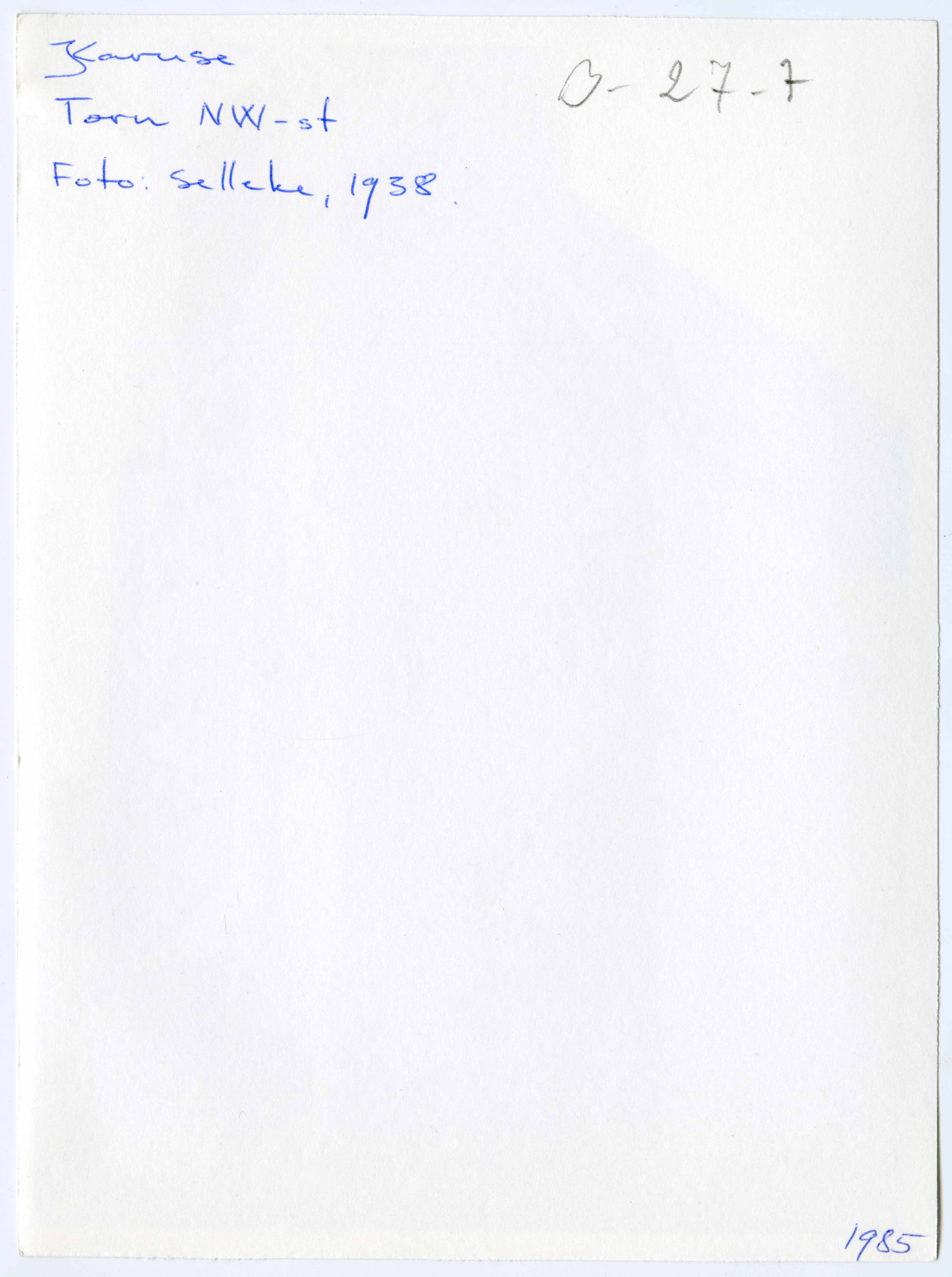 Tekst negatiivi ümbrikul: Karuse, torn. (1985) Templid: Hamini, Selleke 1938