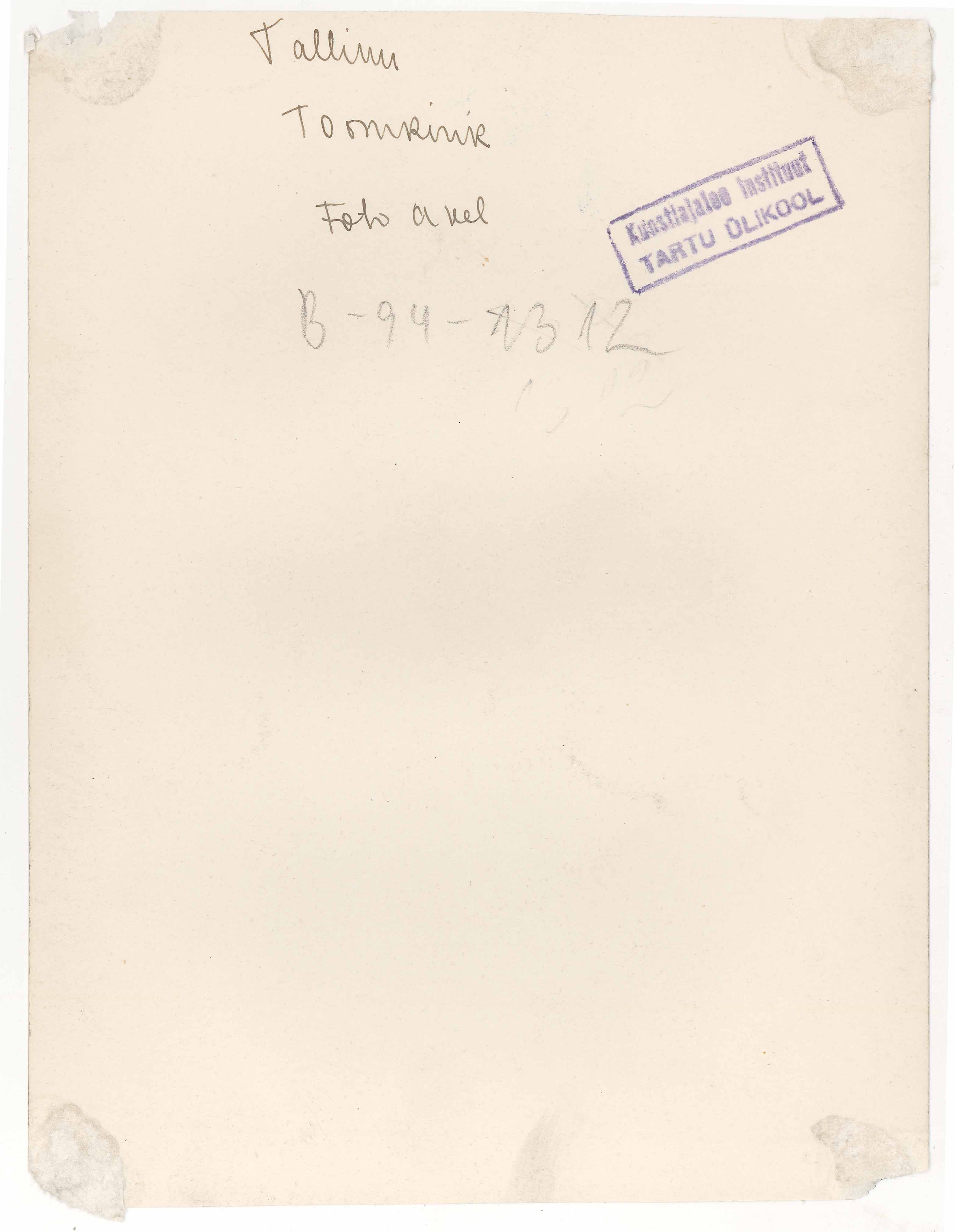 Tekst foto tagaküljel: Tallinn. Toomkirik. Foto Akel. Tempel: Kabinett