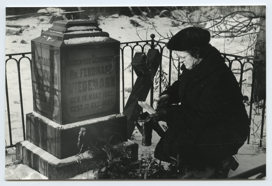 Tartu ülikooli delegatsioon asetamas pärgi Tartu ülikooliga seotud teadlaste haudadele Leningradi Smolenski kalmistul