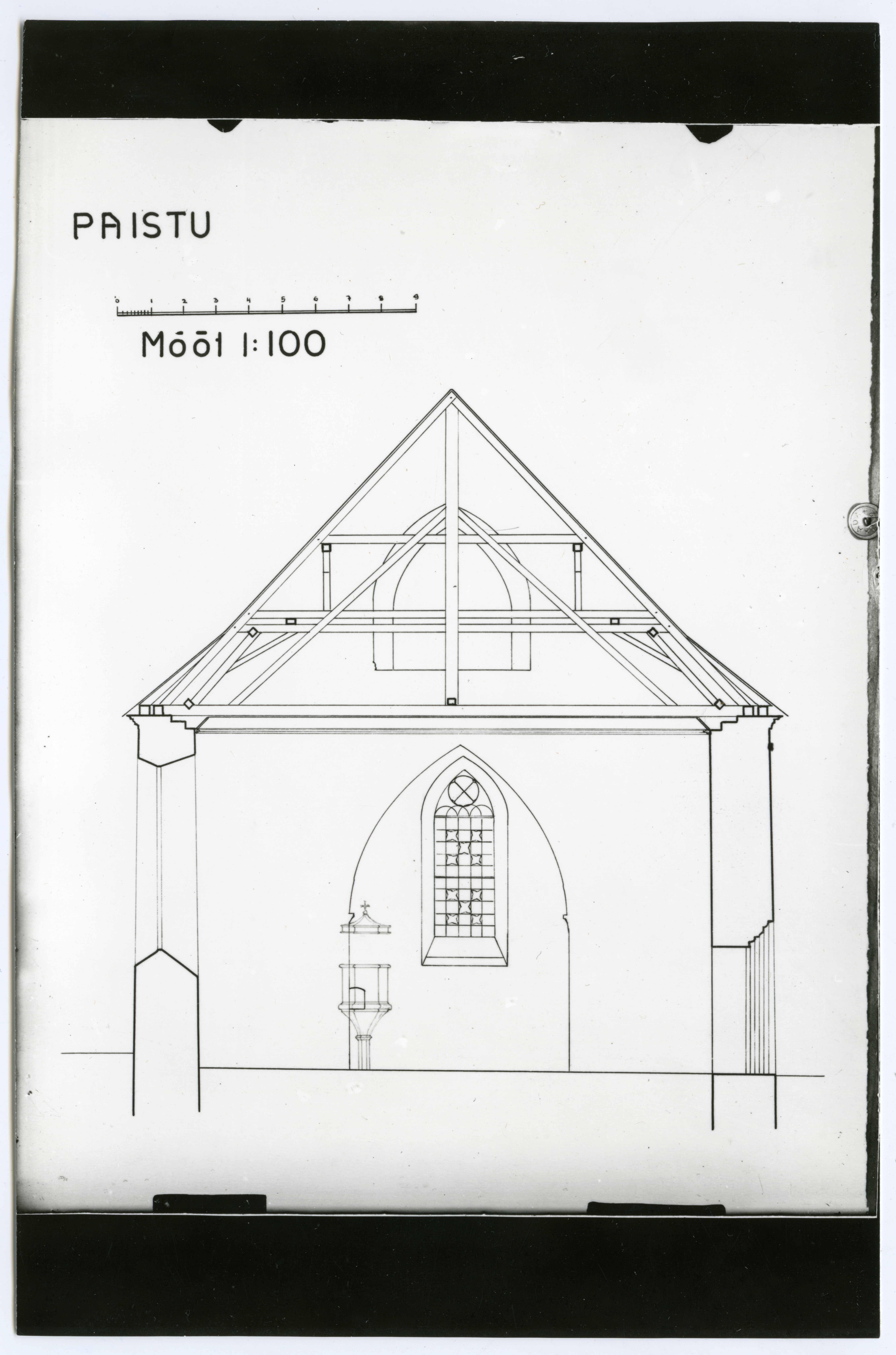 Paistu Maarja kiriku ristlõige mõõtkavas 1:100. Koostanud E. Saadre 1939.a.