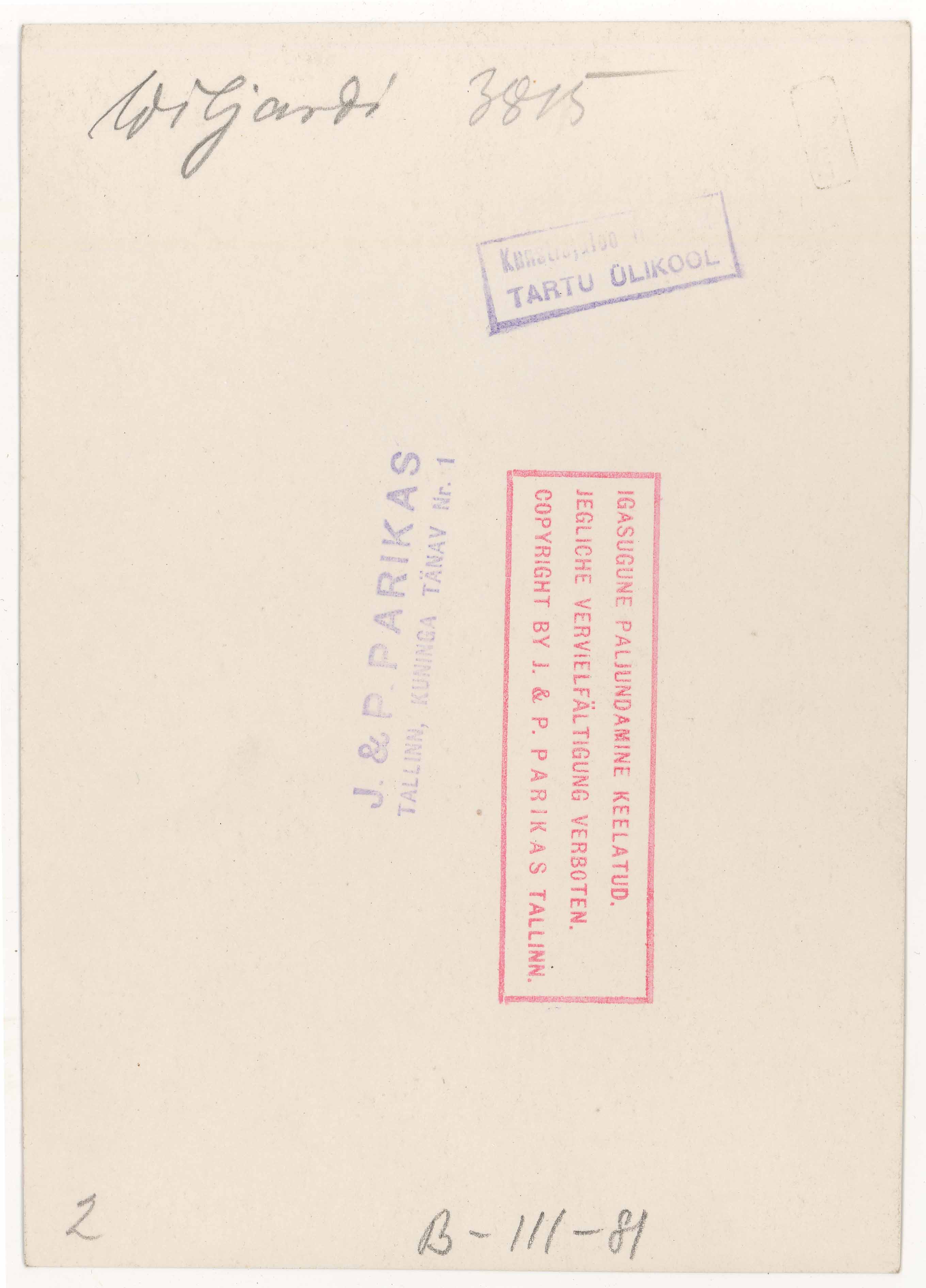 Tekst foto tagaküljel: Wiljandi 3815. Templid: Instituut; J&P