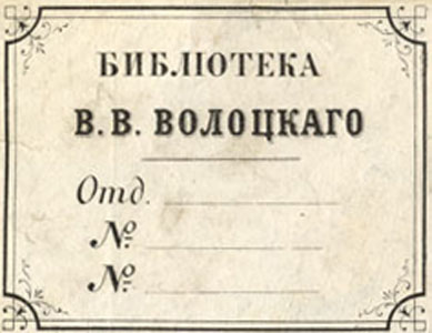 Nelinurkses raamis: БИБЛIОТЕКA / В. В. ВОЛОЦКАГО / Омд. / № / №