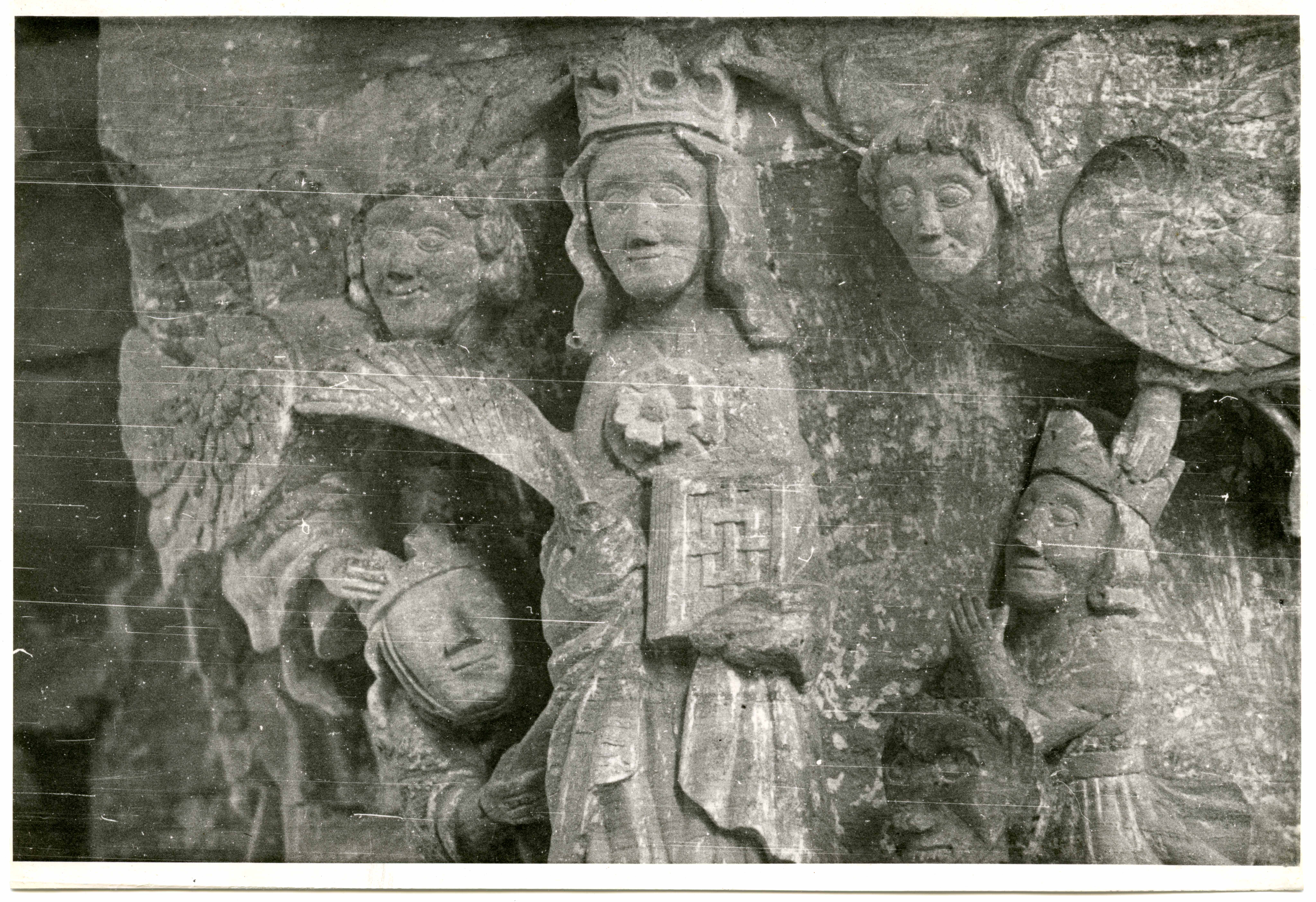 Karja Katariina ja Nikolause kirik. Püha Katariina grupp triumfikaare N-poolel. Eestvaade