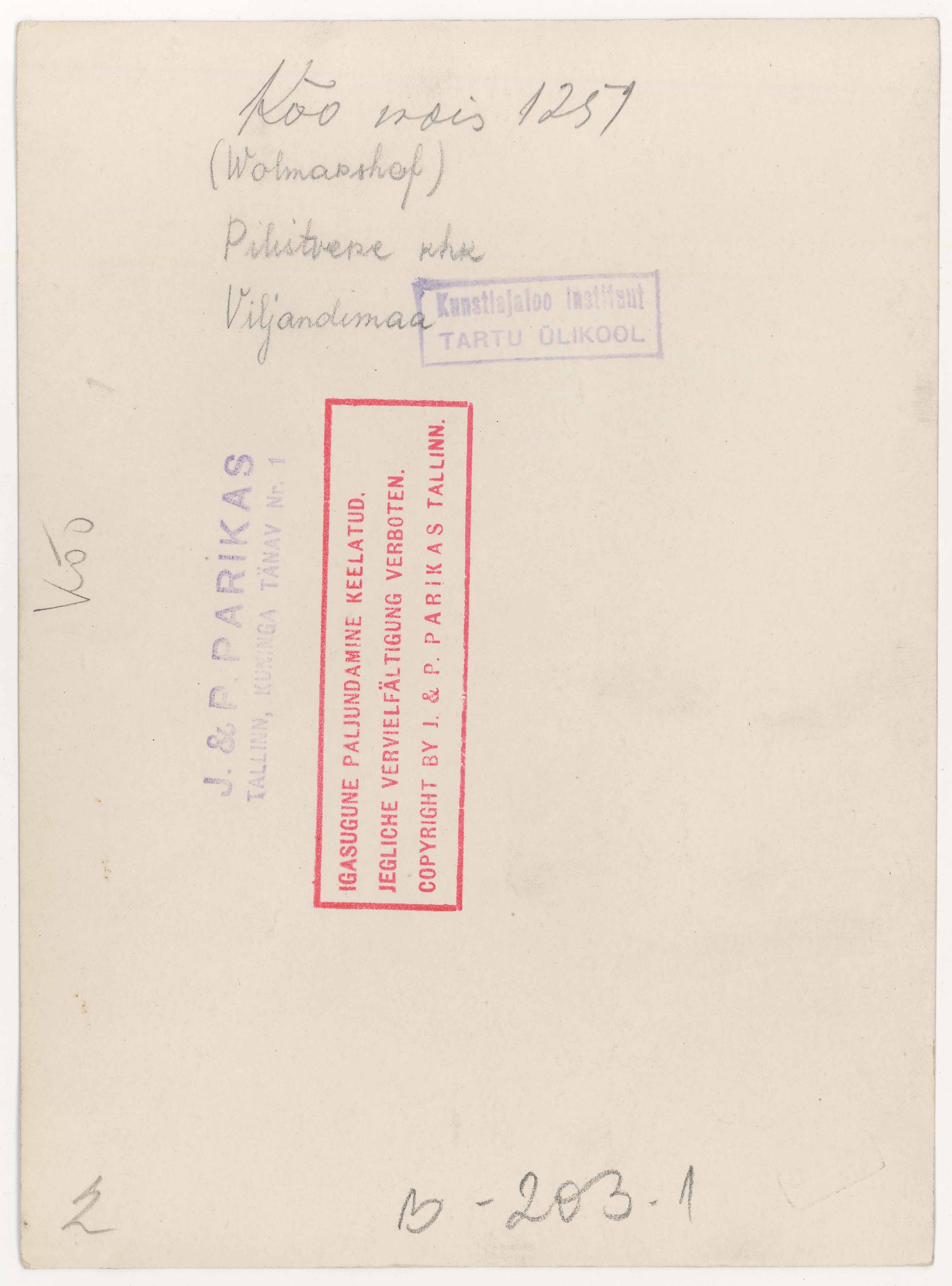 Tekst foto tagaküljel: Kõo mois 1251. (Wolmarshof) Pilistvere khk Viljandimaa. Kõo. Templid: J&P; Instituut
