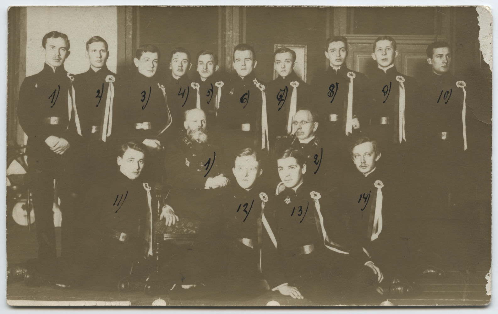 [Tundmatu kooli lõpetajad koos direktor Matvejevi ja inspektor Tjumneviga. Grupipilt]
