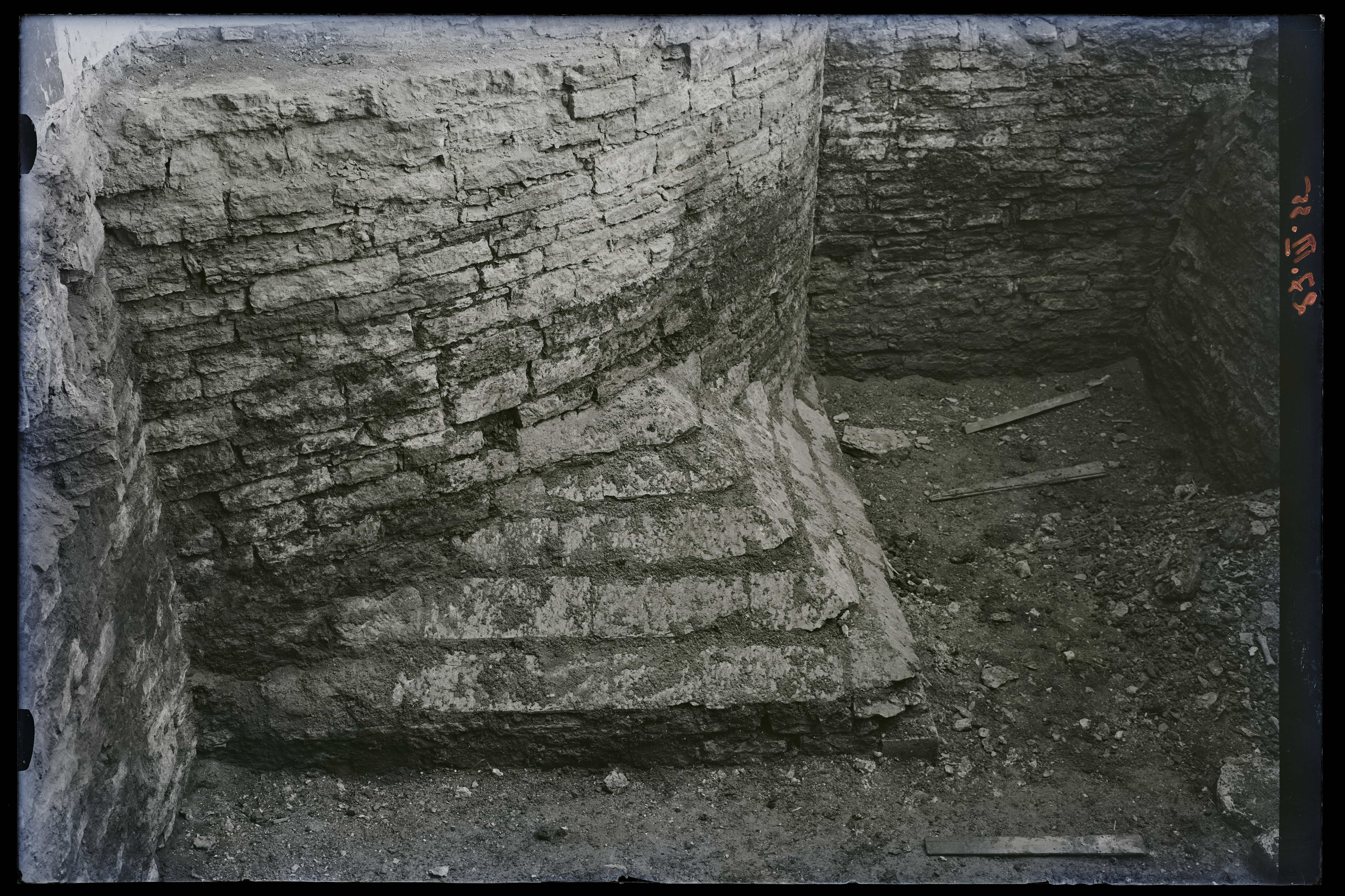 Tallinn. Toompea linnuse väljakaevamised 1935.a märtsis. Pika Hermanni? torni jalam: varasema nelinurkse torni üleminek ümartorniks