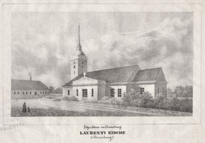 Eesti, Saaremaa, Kuressaare, kohavaated, linnavaated, kirikud (hooned), baltisaksa, kunst, graafika, litograafia, 19. saj.