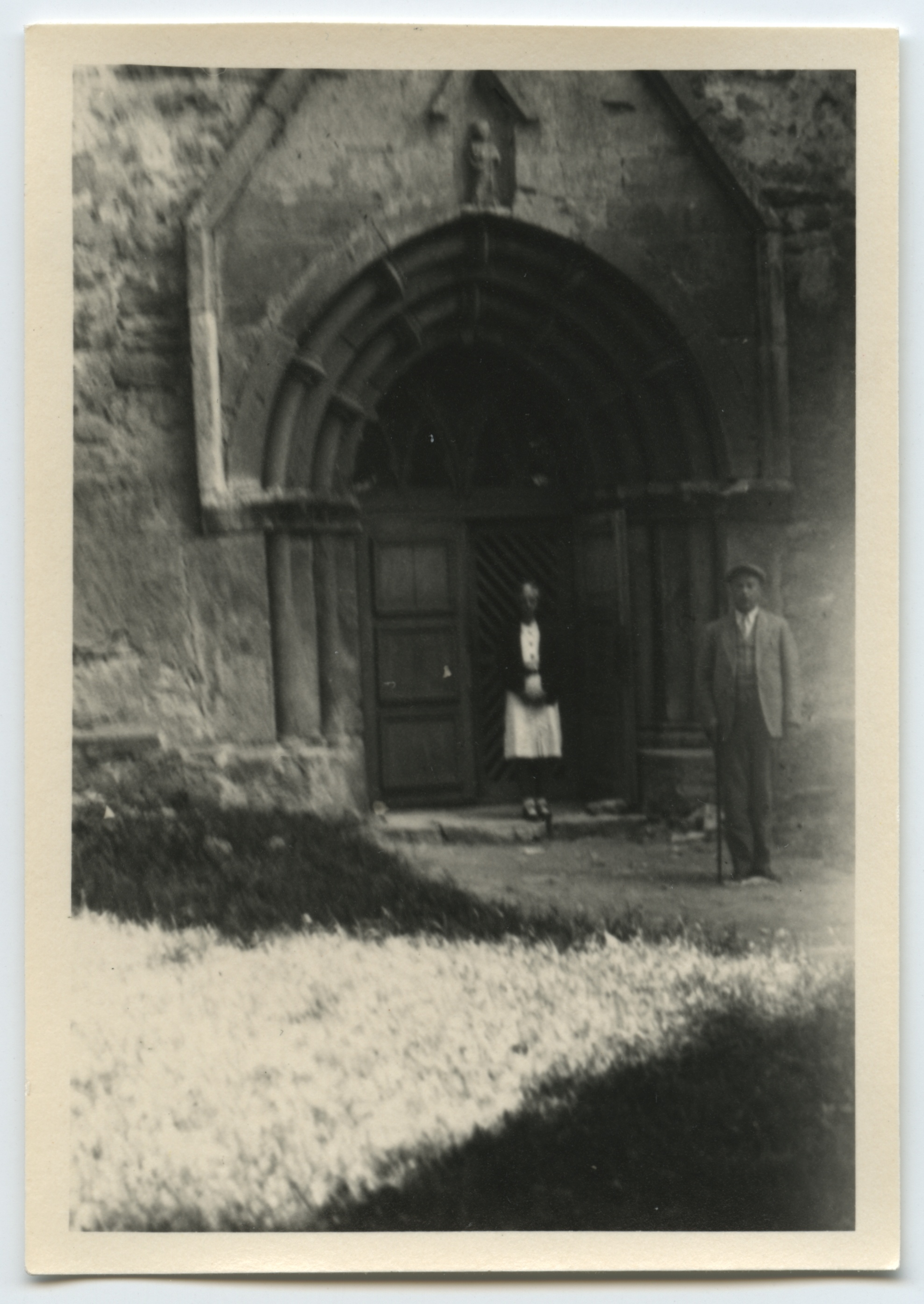 199. Ridala kiriku kiviaed; 200. Ridala kiriku portaal. Portaali ees Herbert Normann (paremal) ja tundmatu