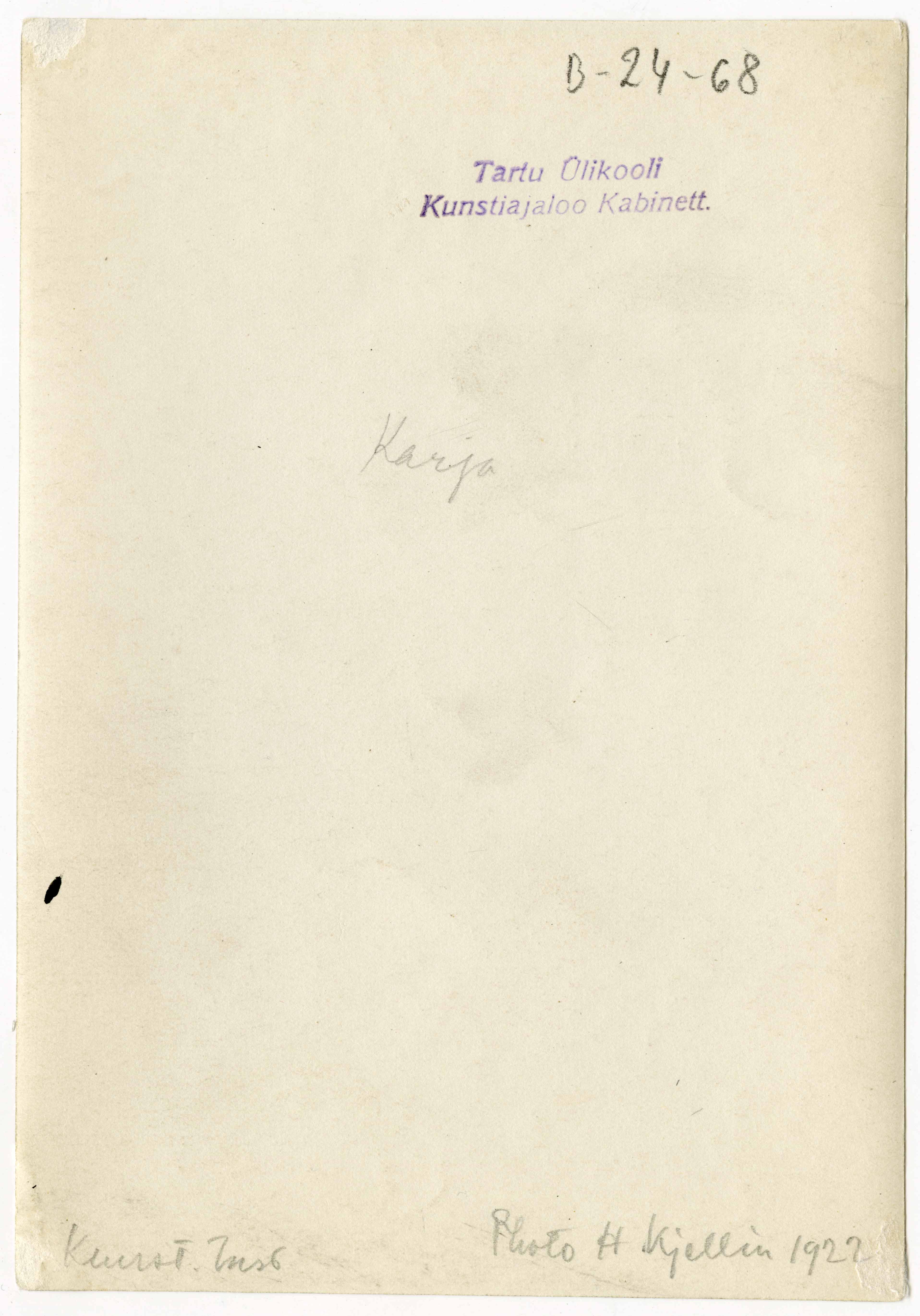 Tekst foto tagaküljel: Karja. Photo H. Kjellin 1922. Kunst. Inst. Tempel: Kabinett