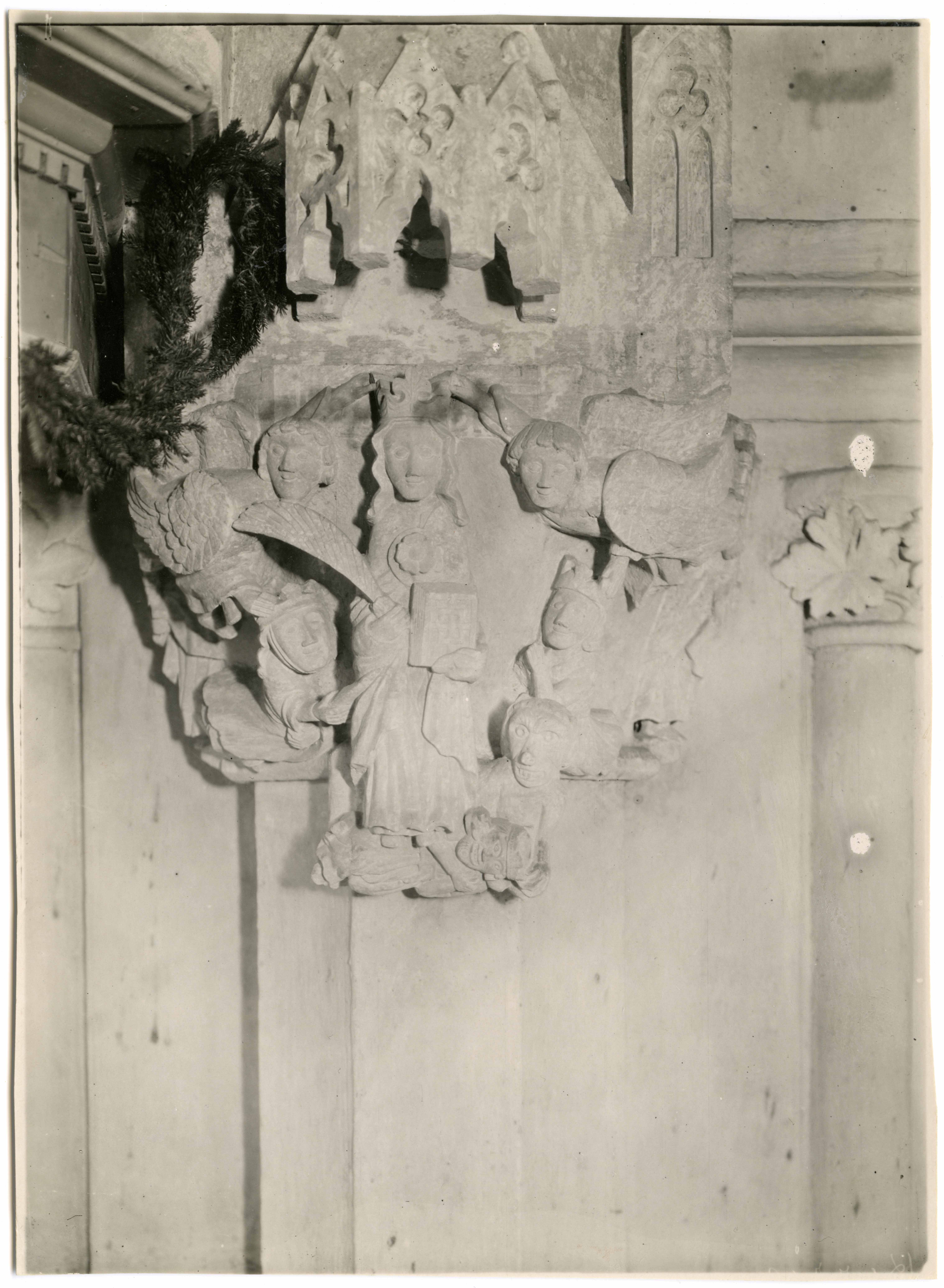 Karja Katariina ja Nikolause kirik. Püha Katariina grupp triumfikaare N-poolel. Eestvaade