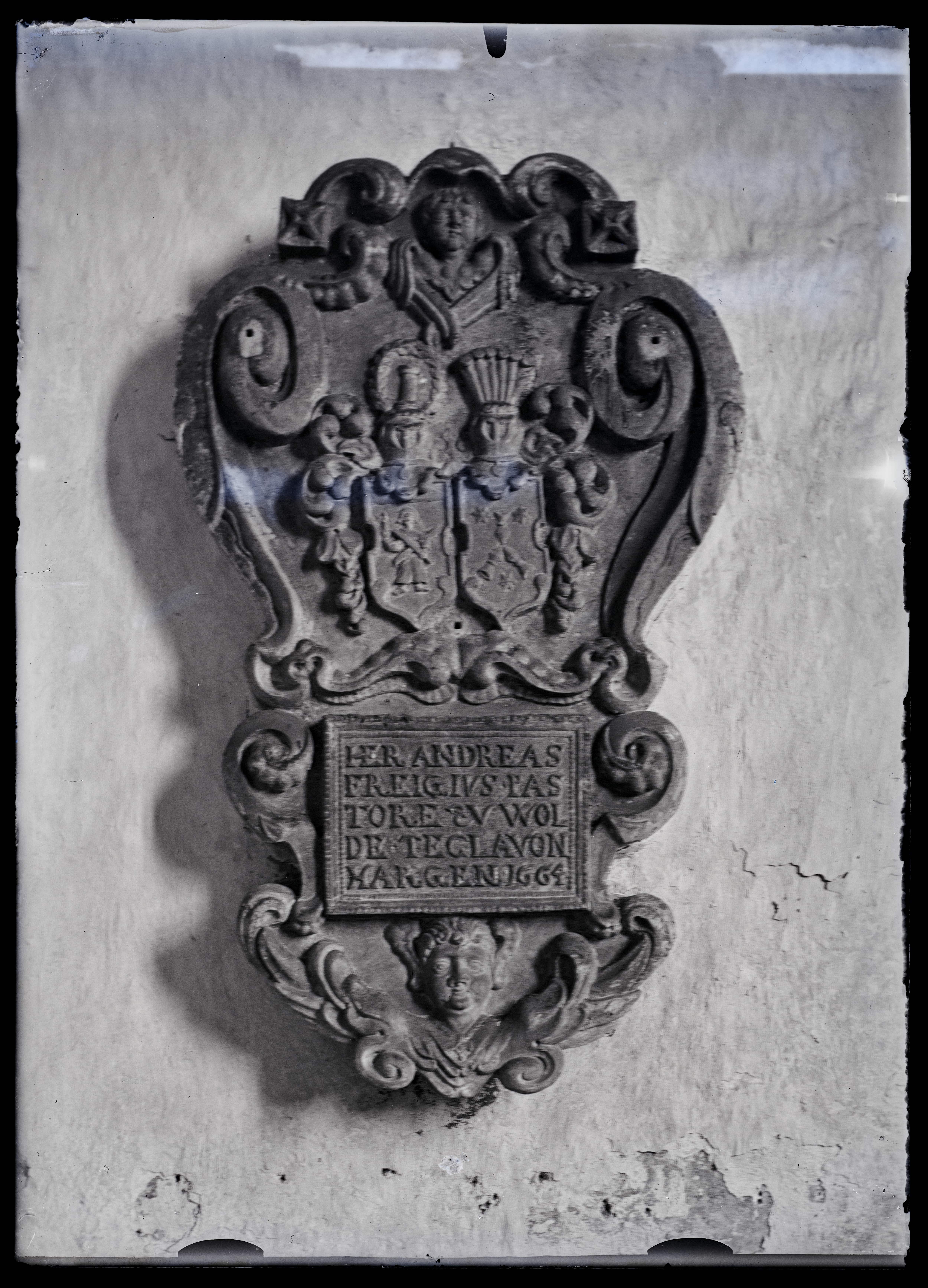Valjala Martini kirik. Valjala pastori Andreas Freigiuse raidepitaaf (1664)